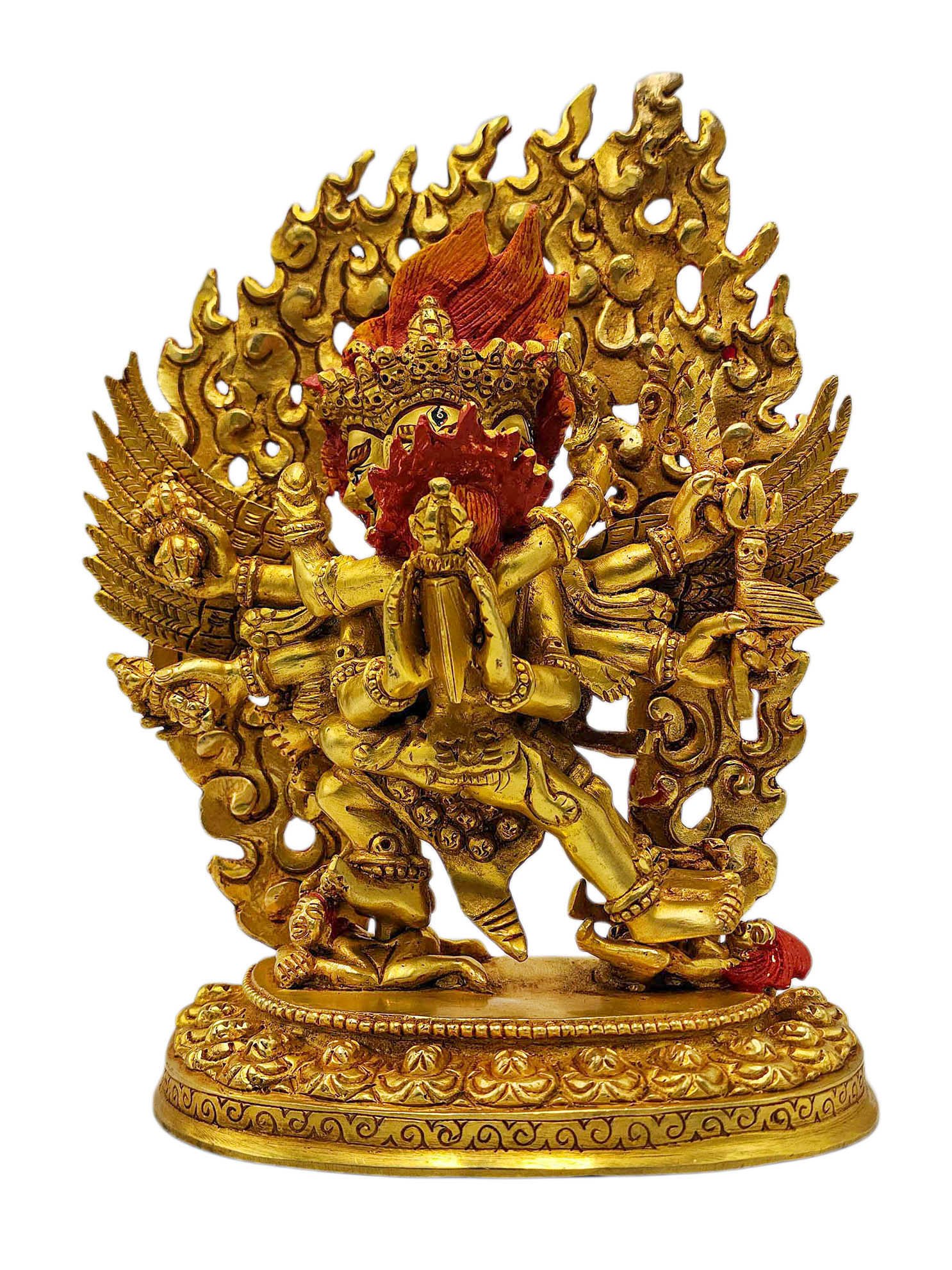 20 cm Statue of Vajrakilaya - Dorje Phurba - Heruka Phurba Full Fire Gold Plated with Painted Face and Antique Finishing