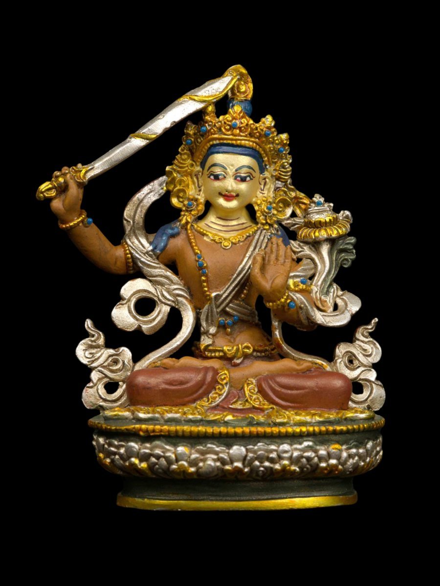 10 cm Manjushree Or Manjushri , Buddhist Miniature Statue, Thangka Color Finishing , Face Painted