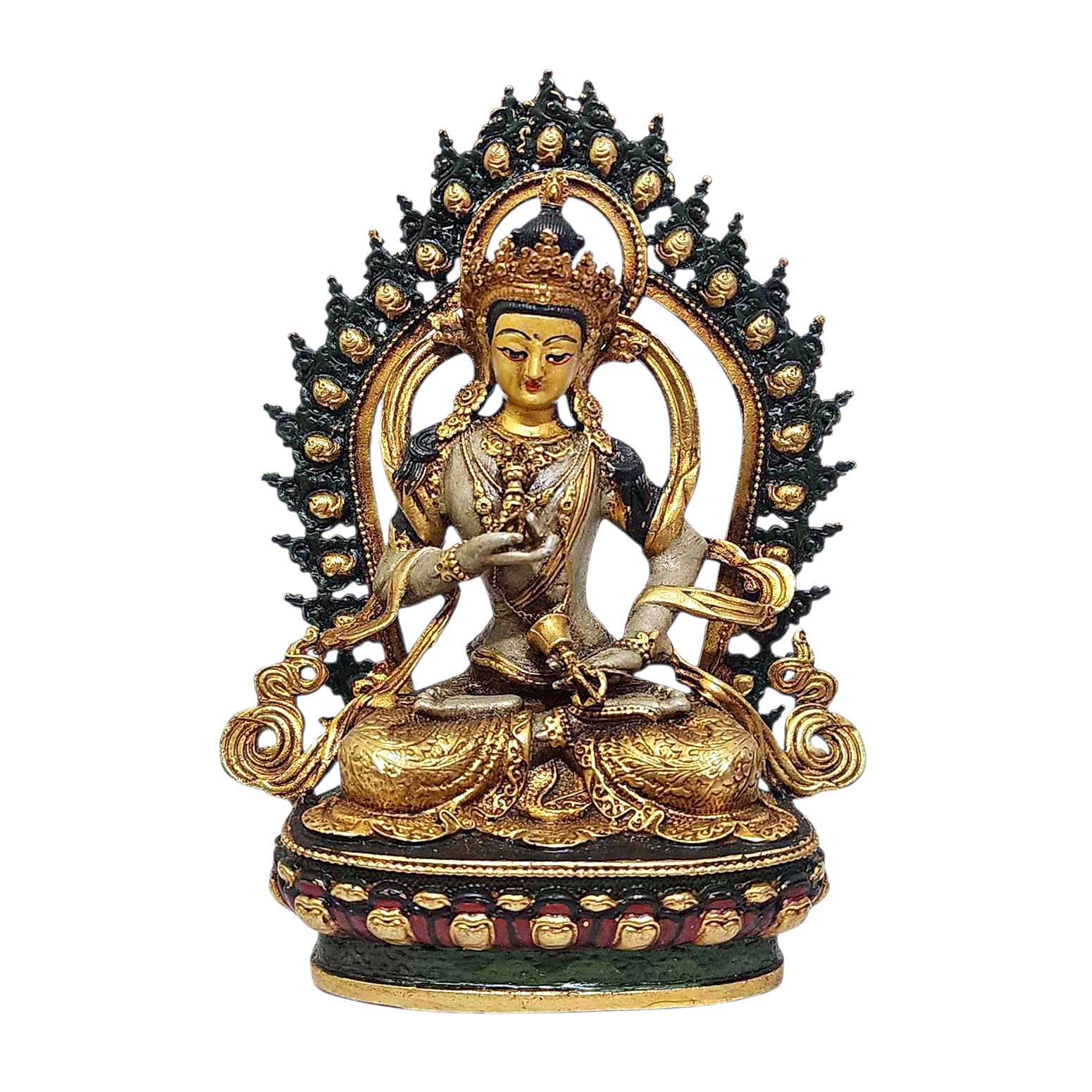 White Tara, Buddhist Miniature Statue, Thangka Color Finishing, Face Painted