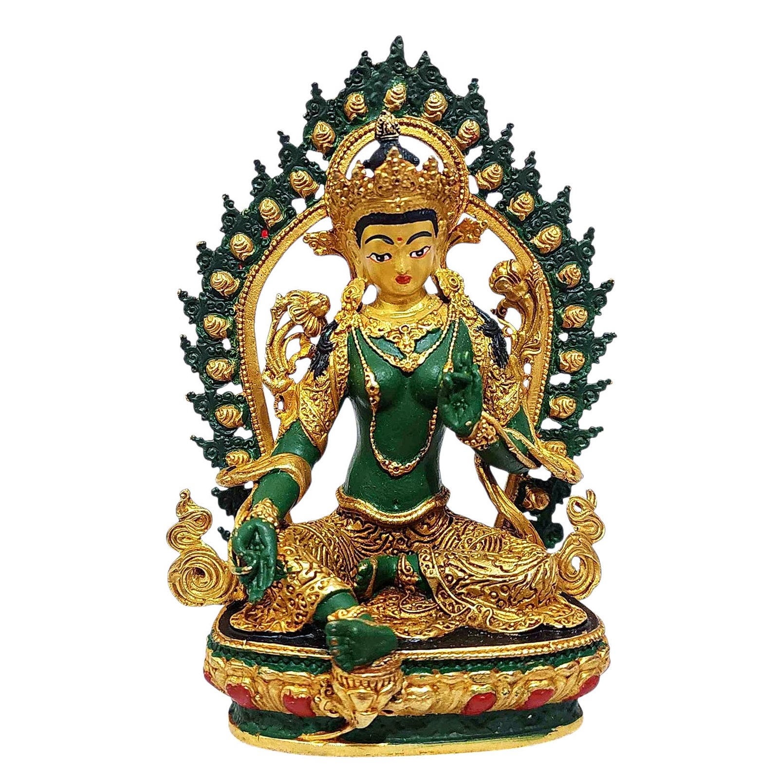 Green Tara, Buddhist Miniature Statue, Thangka Color Finishing
