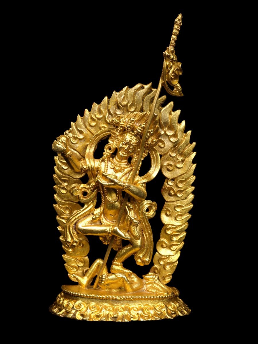 Vajravarahi, also known as Dorje Phagmo, is a prominent deity in Tibetan Buddhism. She is revered as a fierce and powerful manifestation of enlightened wisdom and compassion. Vajravarahi is often depicted as a wrathful deity, symbolizing the transformative energy needed to overcome obstacles and delusions on the path to enlightenment. She holds a skull cup filled with blood, representing the transformation of negative emotions into wisdom nectar, and a curved knife, symbolizing the cutting through of ignorance and dualistic thinking. With her fierce appearance, Vajravarahi represents the intensity and determination required to face and transcend the challenges of existence. Devotees turn to Vajravarahi for protection, healing, and spiritual transformation.