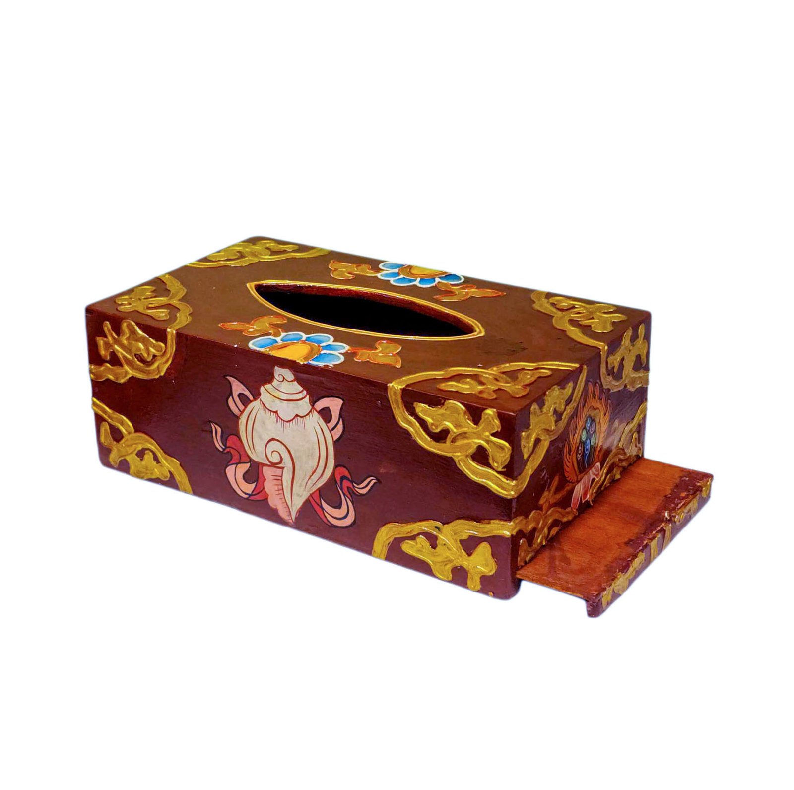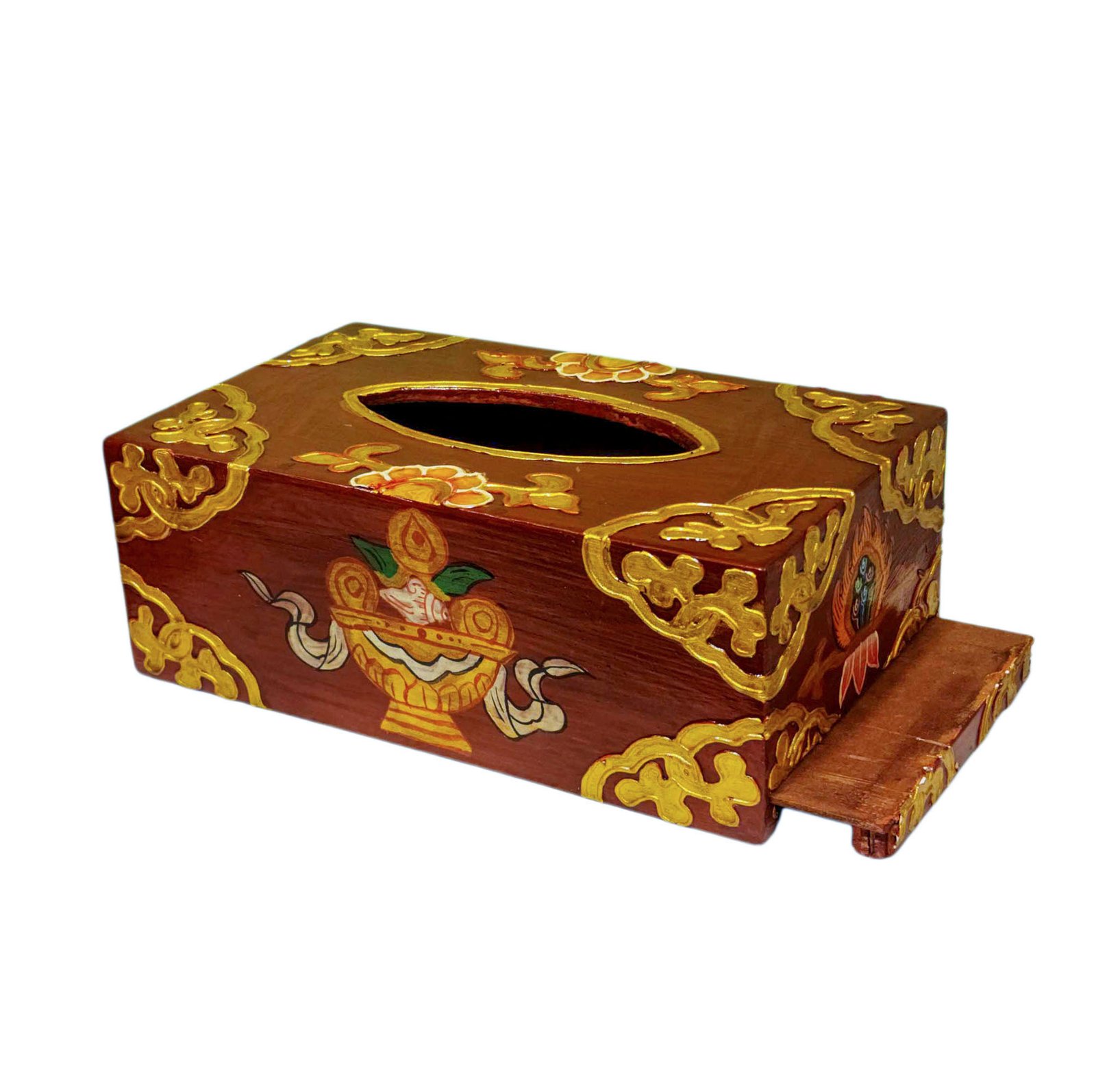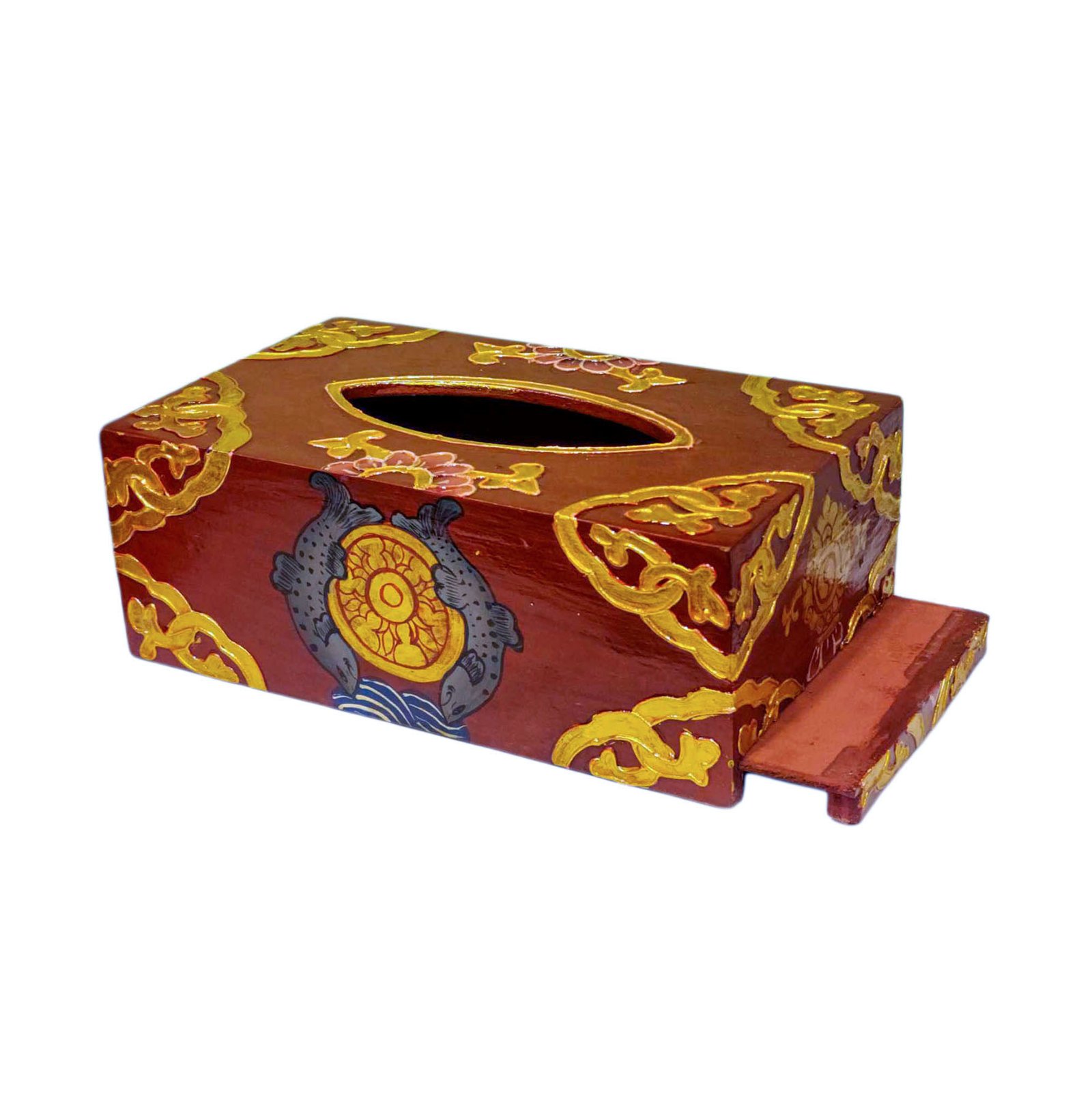 Tibetan Color Palette: Painted in the alluring colors reminiscent of Tibetan art, the tissue holder emanates an aura of serenity and tranquility. The beautiful hues of red, blue, green, and gold evoke a feeling of cultural enchantment, creating a harmonious atmosphere wherever it's placed.