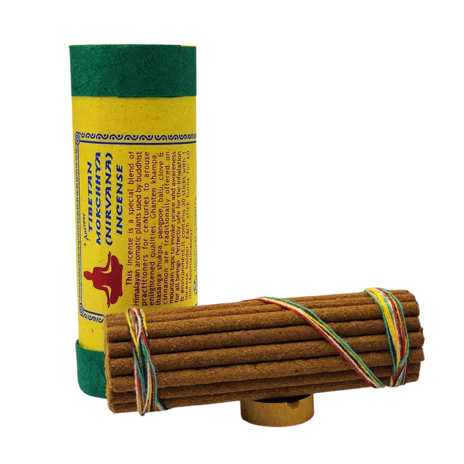 This incense is a special blend of Himalayan aromatic plants used by buddhist practitioners for centuries to arouse enlightened qualities. Ghanten khampa, lhasanga shukpa, pangpoe, balu, clove & cinnamon are traditionally offered mountain tops to invoke peace and awareness for all beings. Perfectly safe for the inhalation & environment.It contains 30 sticks with 1 incense holder. Each stick burns for 60 min. (Approximately)