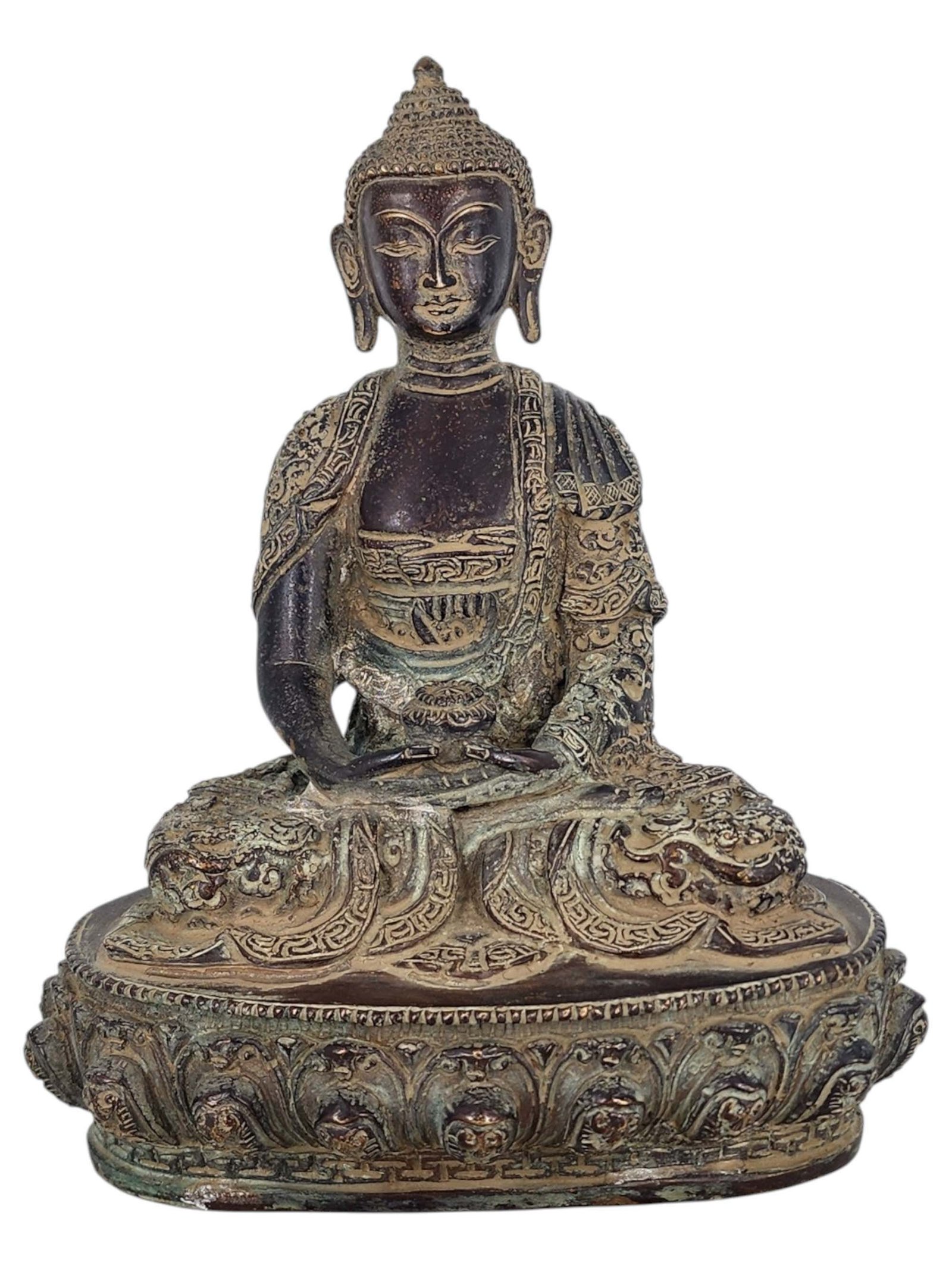 21 cm Amitabha Buddha Statue Handmade, Antique Finish Old Stock