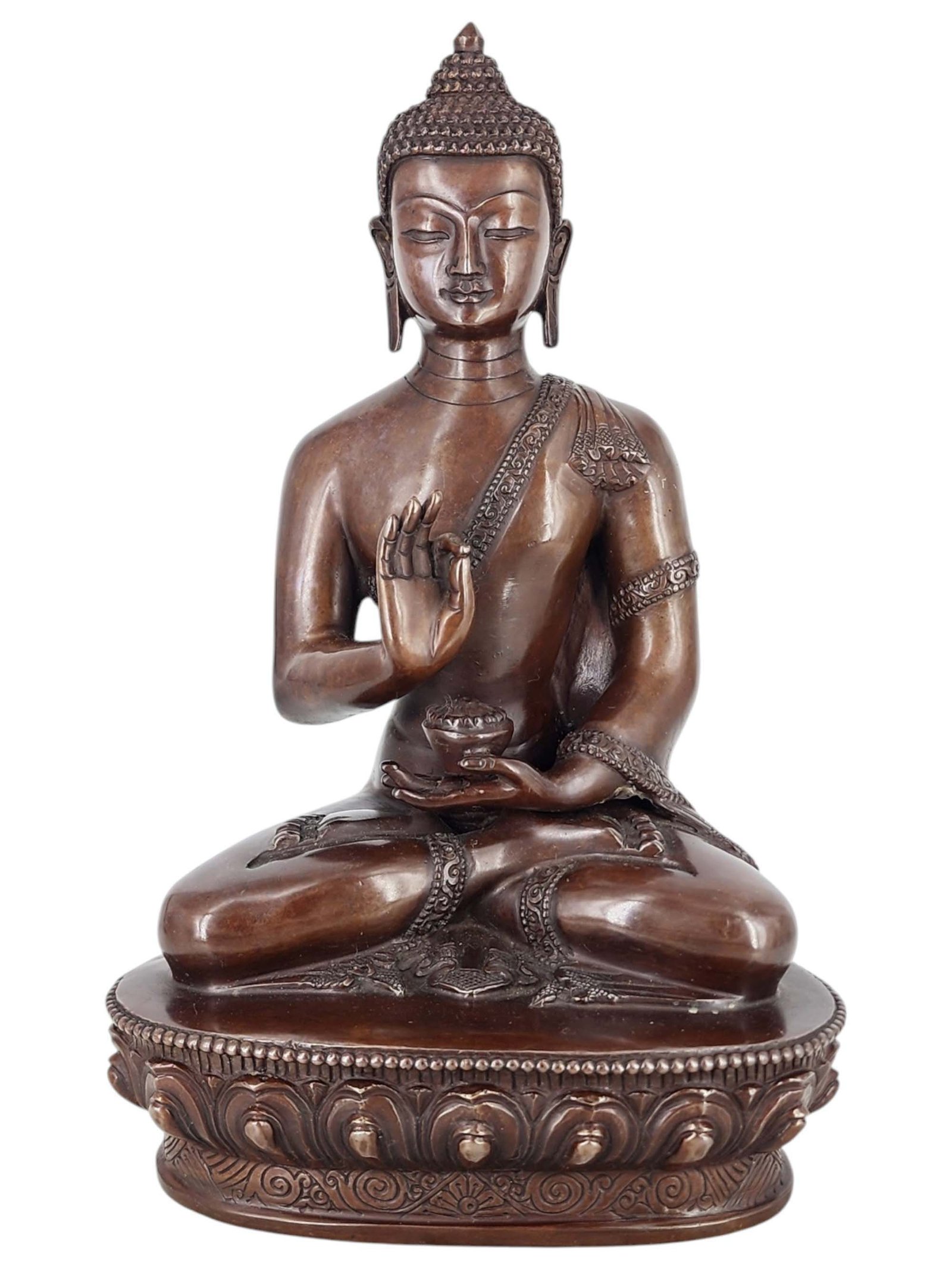 24 cm Amoghasiddhi Buddha Statue Handmade, Chocolate Oxidized