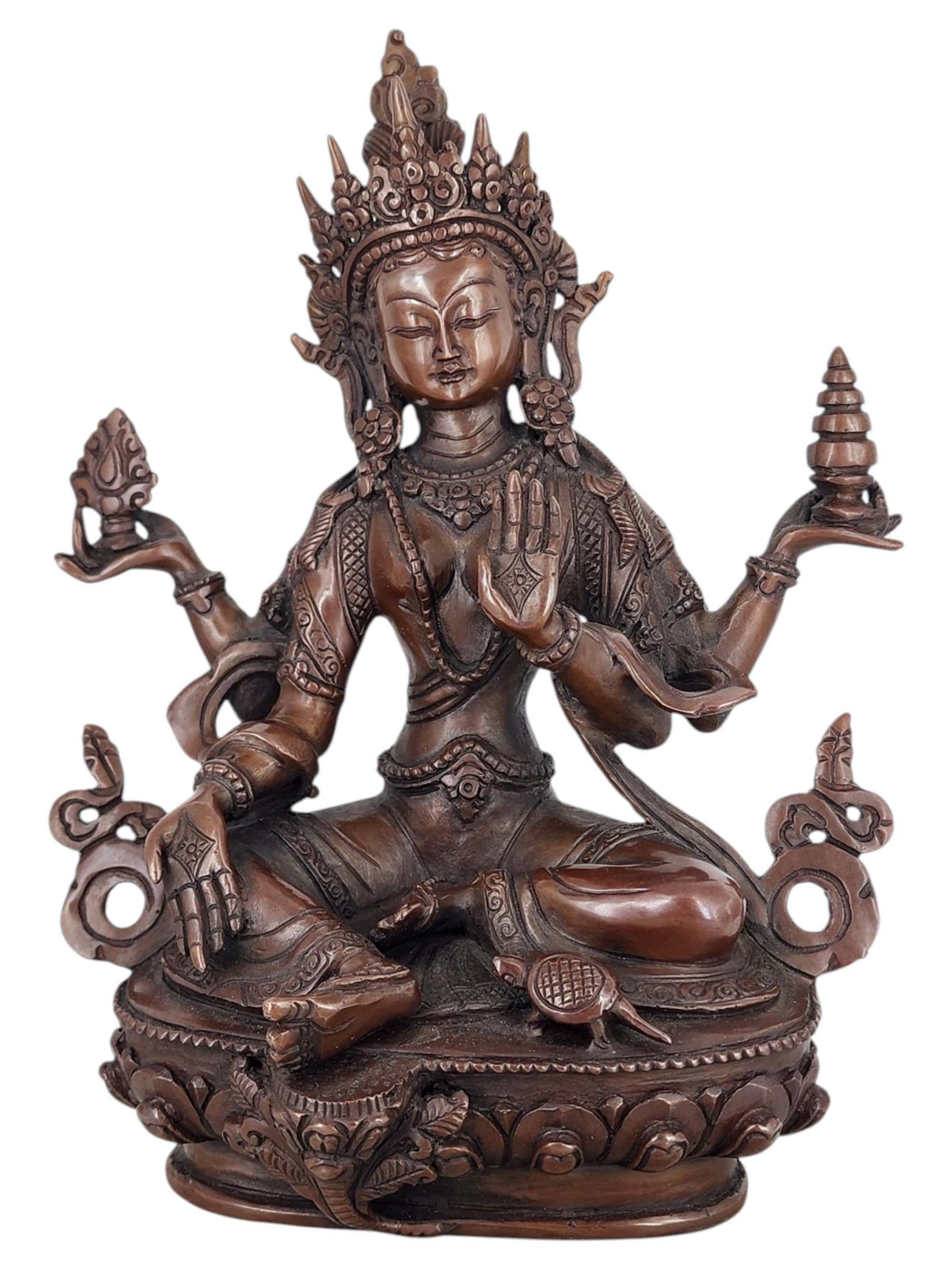 Green Tara Statue Handmade, Chocolate Oxidized Finish