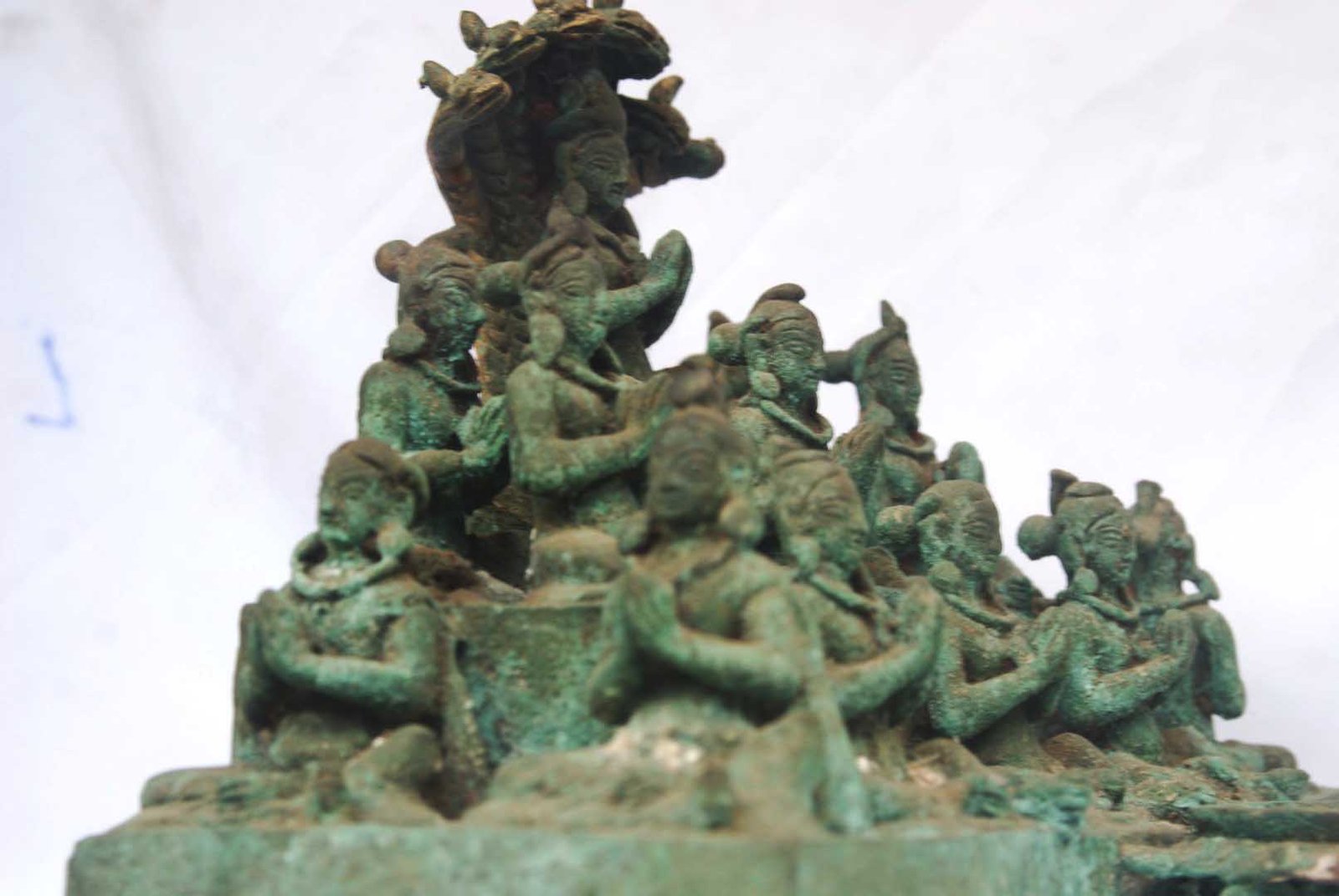 This is an age old statue of Nagraj or "King of Snakes" seated beautifully with his queens and is made out of copper.