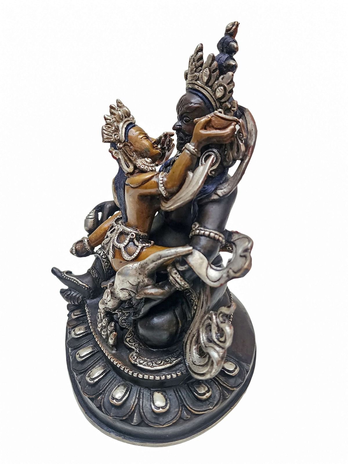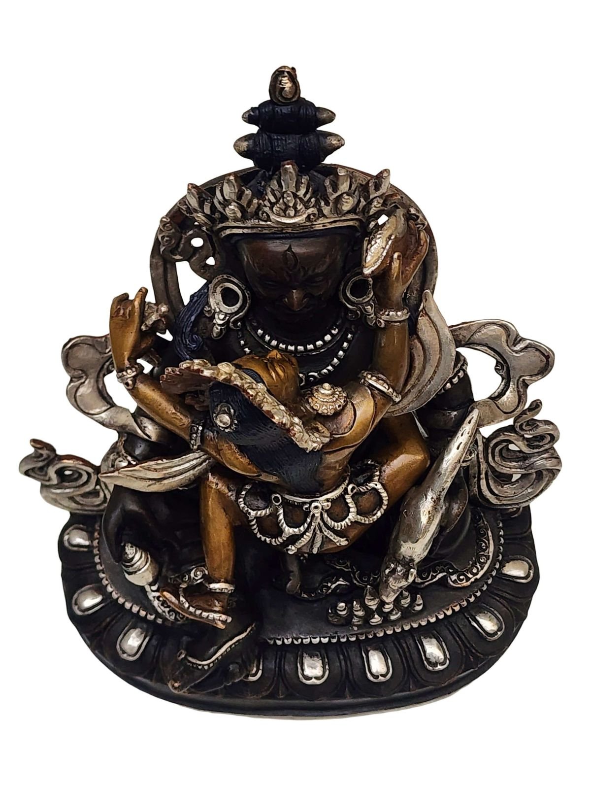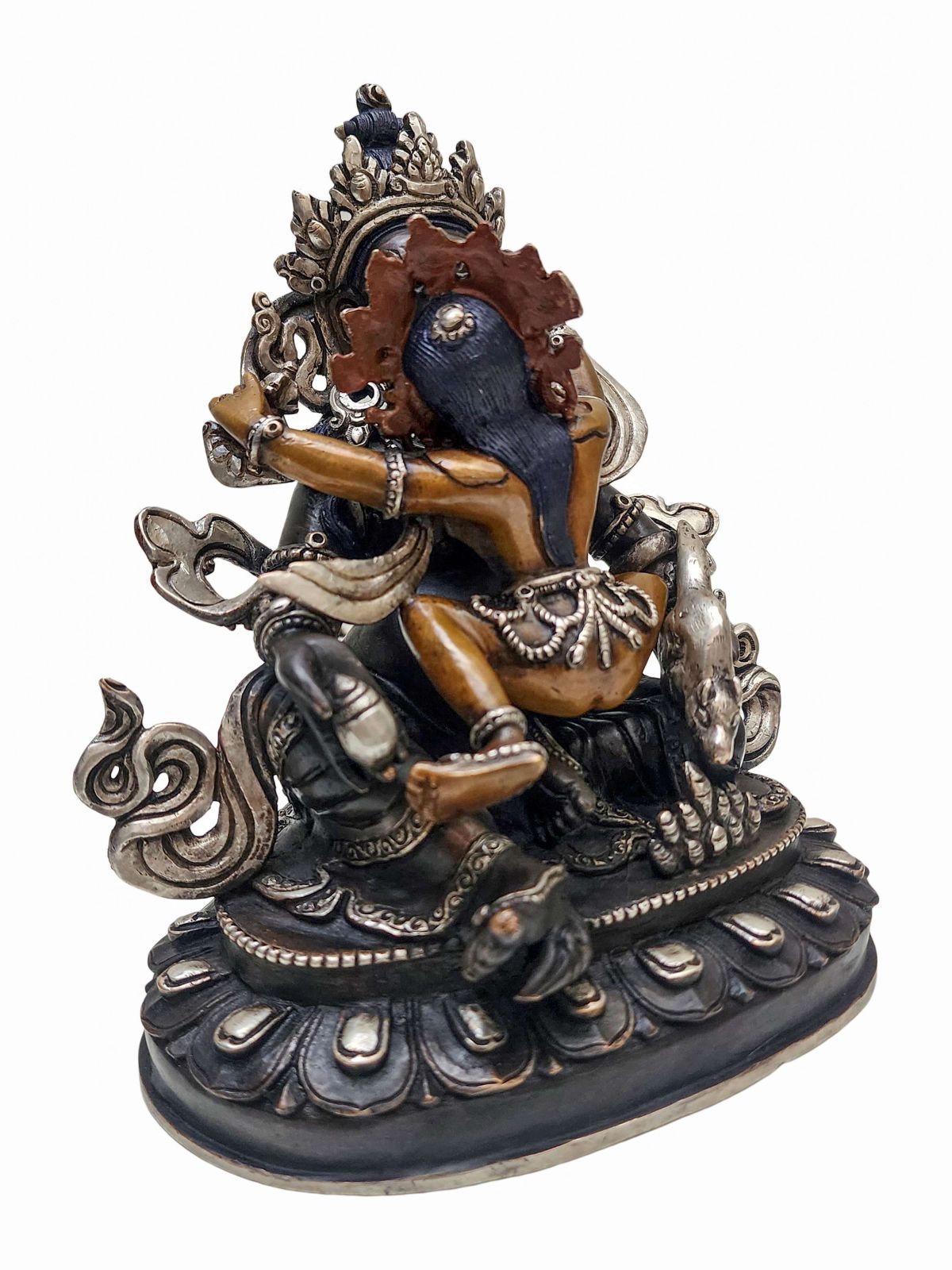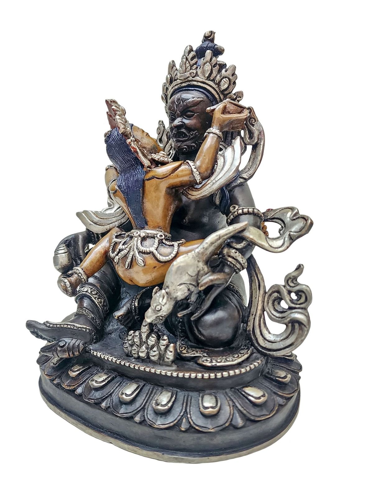 Green Jambhala, Chocolate Oxidized, Partly Silver Plated , Wealth Deity, Bestower of Prosperity and Abundance