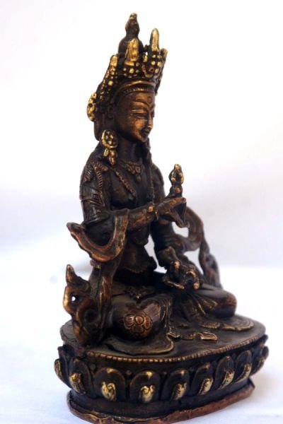This is a handmade statue of Vajrasattav, made by the process of loss wax system. Unlike regular bronzes available in Nepal this statue has a very clean body and beautiful face.