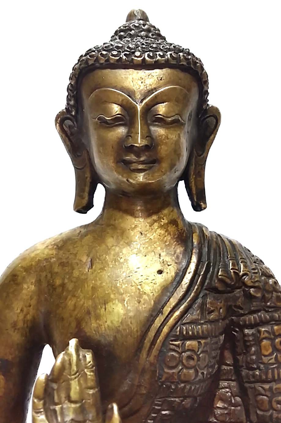 The art of giving the bronze color to red copper is truly exceptional and is practiced by skilled craftsmen. With each piece, you not only acquire a beautifully finished Amoghasiddhi Buddha product but also pay homage to the artisans who are dedicated to preserving this rare and fading art form. The result is a unique and captivating aesthetic that adds a touch of sophistication and nostalgia to any setting. Read More