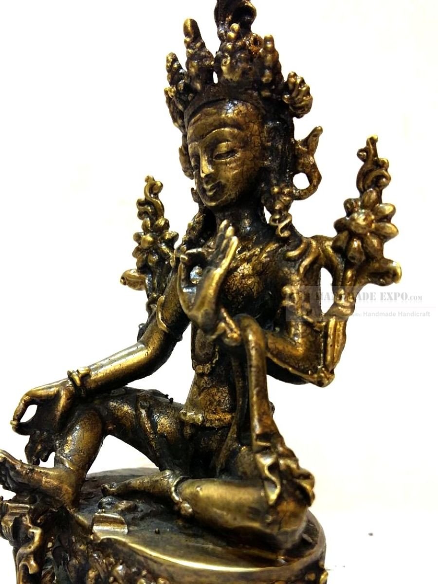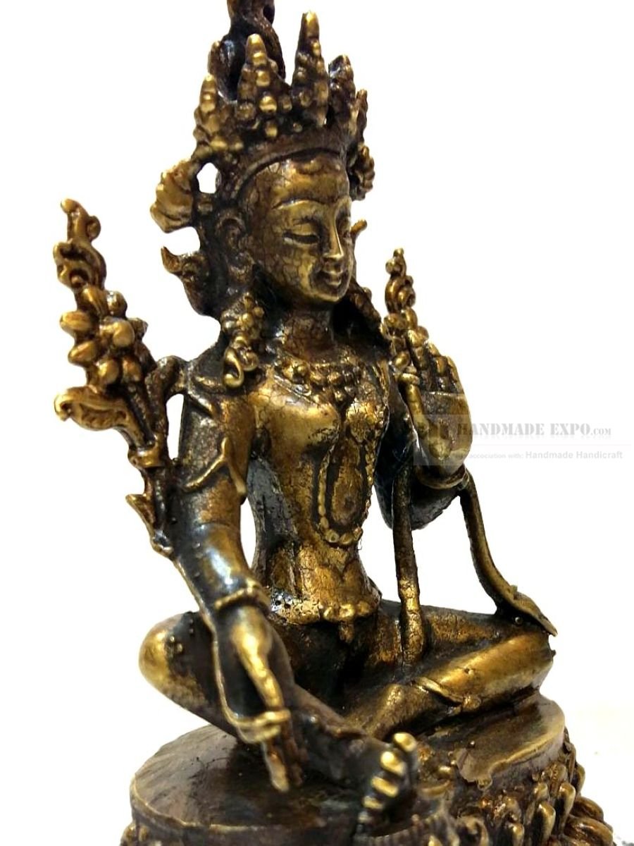 This Green Tara product features a stunning Bronze patina finish. Our store takes pride in offering this exclusive patina, which involves a meticulous process utilizing organic materials such as butter and vegetable color. The aim is to recreate the appearance of an aged bronze statue, evoking a sense of timeless elegance.