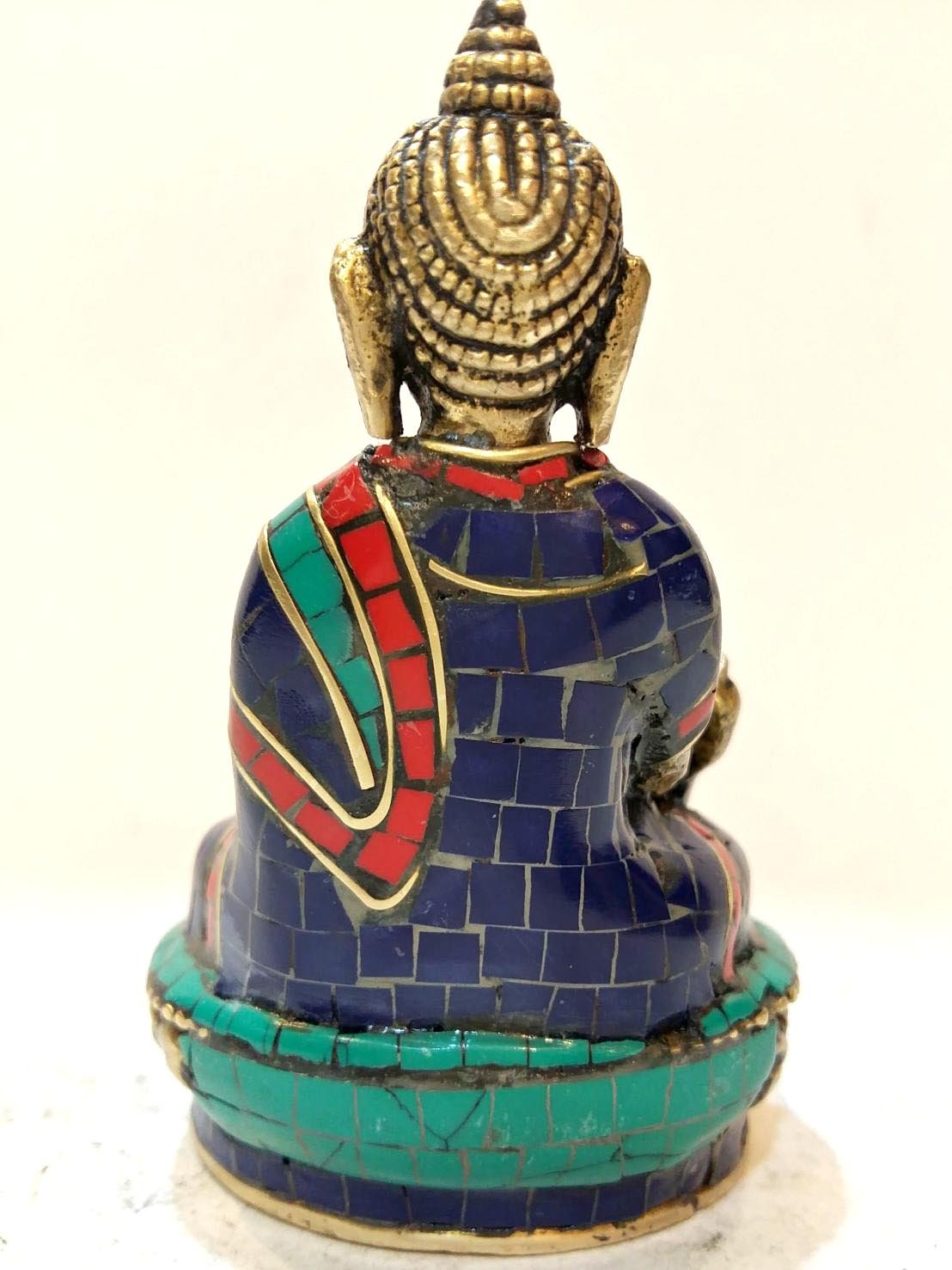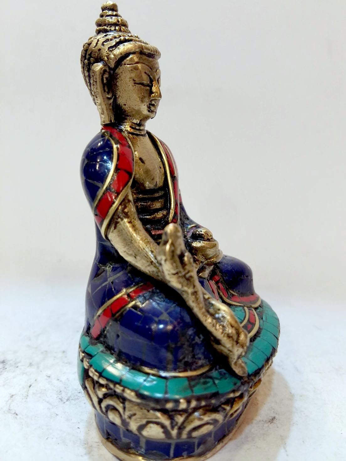 The Medicine Buddha is adorned with an exquisite array of semi-precious stones, including turquoise, coral, and lapis lazuli. These stones are carefully selected and meticulously placed on the Medicine Buddha's surface, adding a touch of opulence and enhancing its overall beauty. Each stone is thoughtfully positioned using a high-quality adhesive, ensuring secure and long-lasting attachment. The vibrant colors and unique patterns of the stones create a captivating contrast against the backdrop of the Medicine Buddha, elevating its visual appeal and making it truly eye-catching. Read More