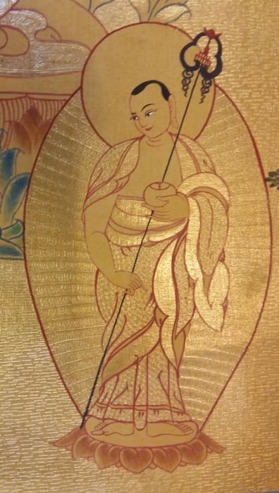 A thangka, also known as tangka, thanka, or tanka, is a vibrant and intricate Tibetan Buddhist painting that serves as a visual representation of spiritual teachings. Crafted with meticulous detail on cotton or silk appliqué, thangkas depict a wide range of subjects including Buddhist deities, sacred scenes, mandalas, and narrative stories. These sacred artworks are traditionally kept unframed and rolled up for storage, resembling ancient scrolls. To protect their delicate nature, thangkas are mounted on textile backings and often adorned with a silk cover on the front. Proper preservation in dry environments is crucial to maintain the integrity and longevity of the silk. Read More