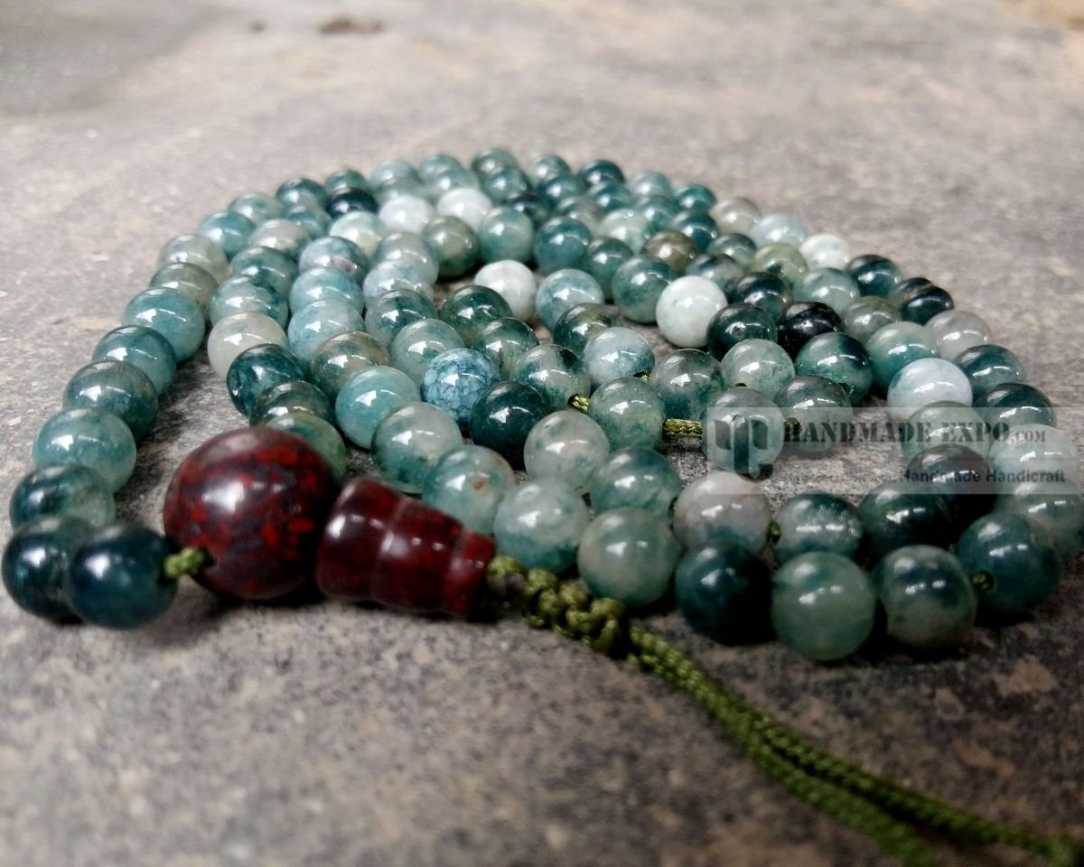Traditionally, mala beads are made from natural materials such as wood, seeds, or stones. They are typically 108 in number, with each bead representing one recitation of a prayer or mantra. This number is believed to have spiritual significance, as 108 is a sacred number in Buddhism and other Eastern spiritual traditions.