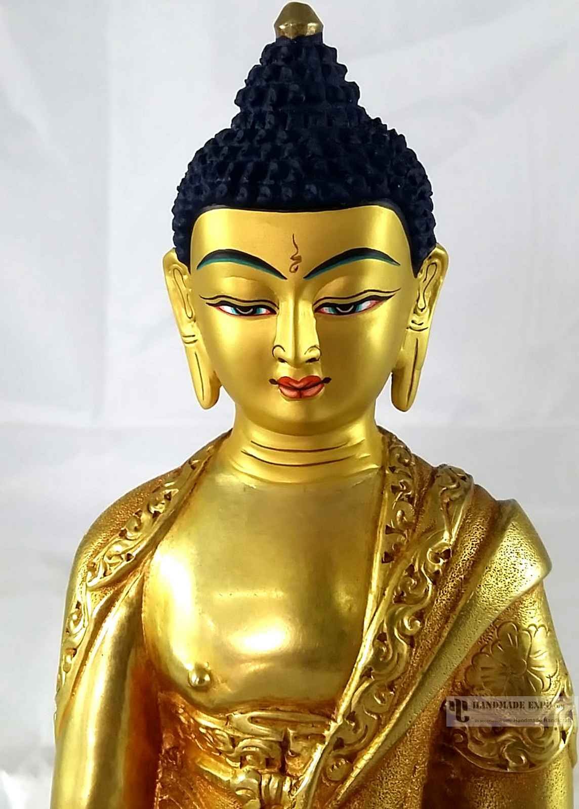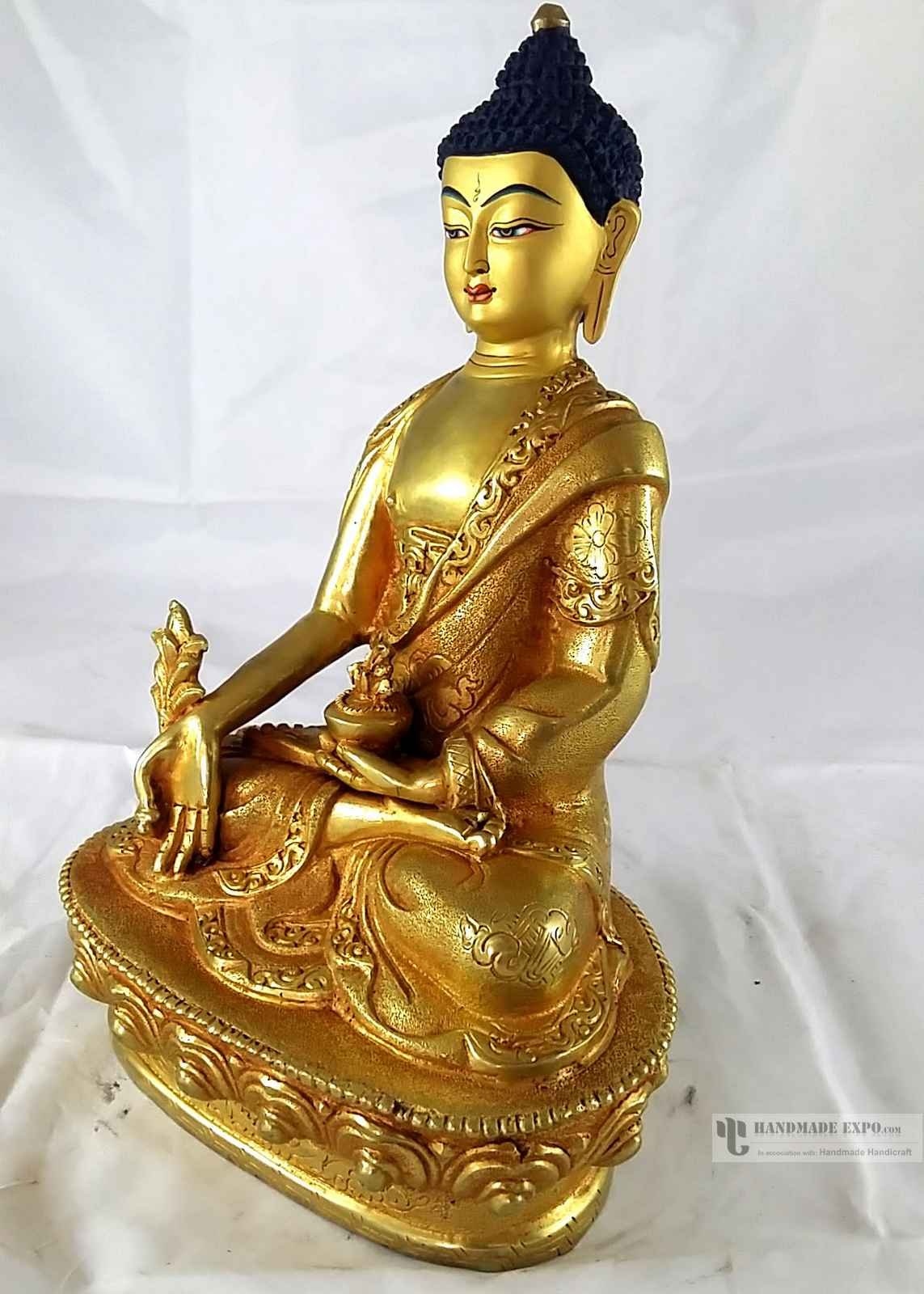 Statue of Medicine Buddha- Full Fire Gold Plated, with Painted Face , Healer of physical and spiritual ailments, bringer of health and peace
