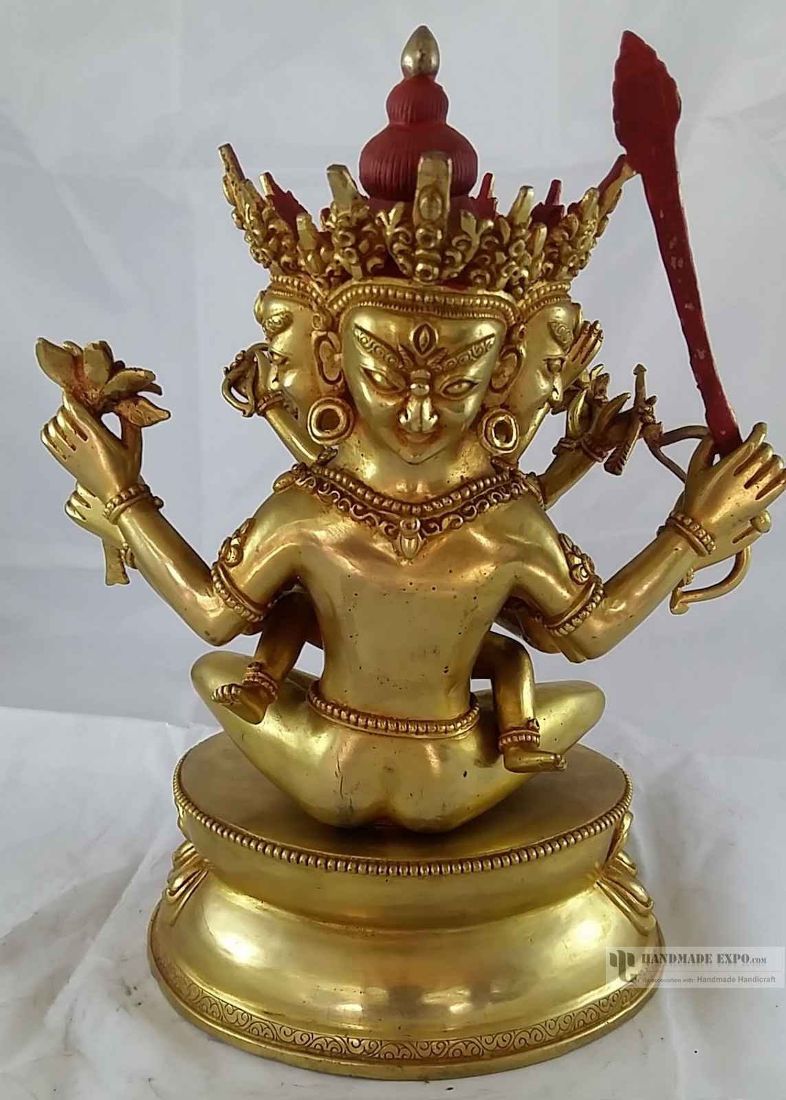 1.This statue has been plated with Gold by the ancient process of Fire Gold plated(Mixture of Mercury and Gold is applied on the statue, Which after is burnt so as mercury evaporated and the gold is plated on the statue. ) This type of gold plating is permanent as the real layer of Gold is plated on the statue.