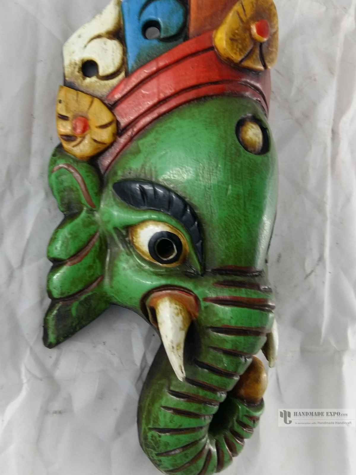 Ganesh Head Painted Wooden Mask For Decorative Wall Hangings, Poplar Wood , Remover of Obstacles, God of Wisdom and New Beginnings