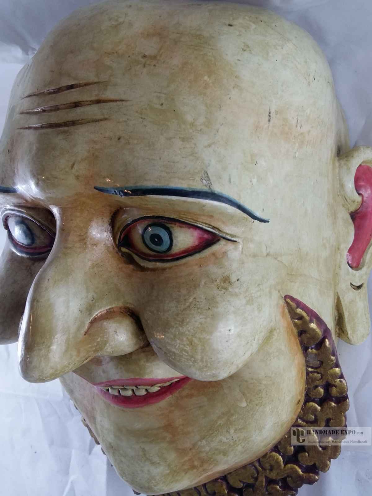 Laughing Buddha Head Painted Wooden Mask For Decorative Wall Hangings, Painted, Poplar Wood |