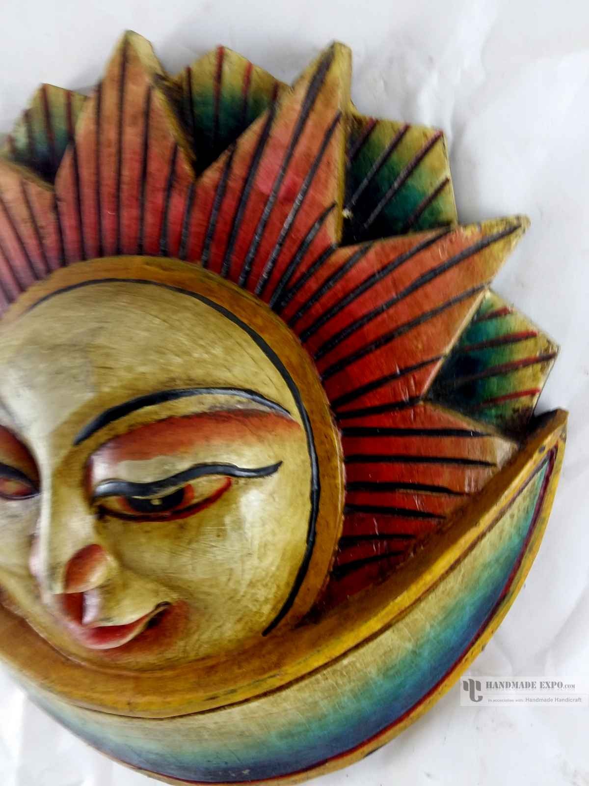 this sun mask is Nepali handmade mask and we are Introducing our exquisite collection of Nepali handmade hand-carved wooden Buddhist masks and wall hangings, meticulously crafted by skilled artisans. Each piece in this collection reflects the rich cultural heritage and spiritual significance of Nepal. These masks and wall hangings are not just decorative pieces but hold deep symbolic meaning, making them perfect for adding an authentic touch to your living spaces or meditation rooms. Read More