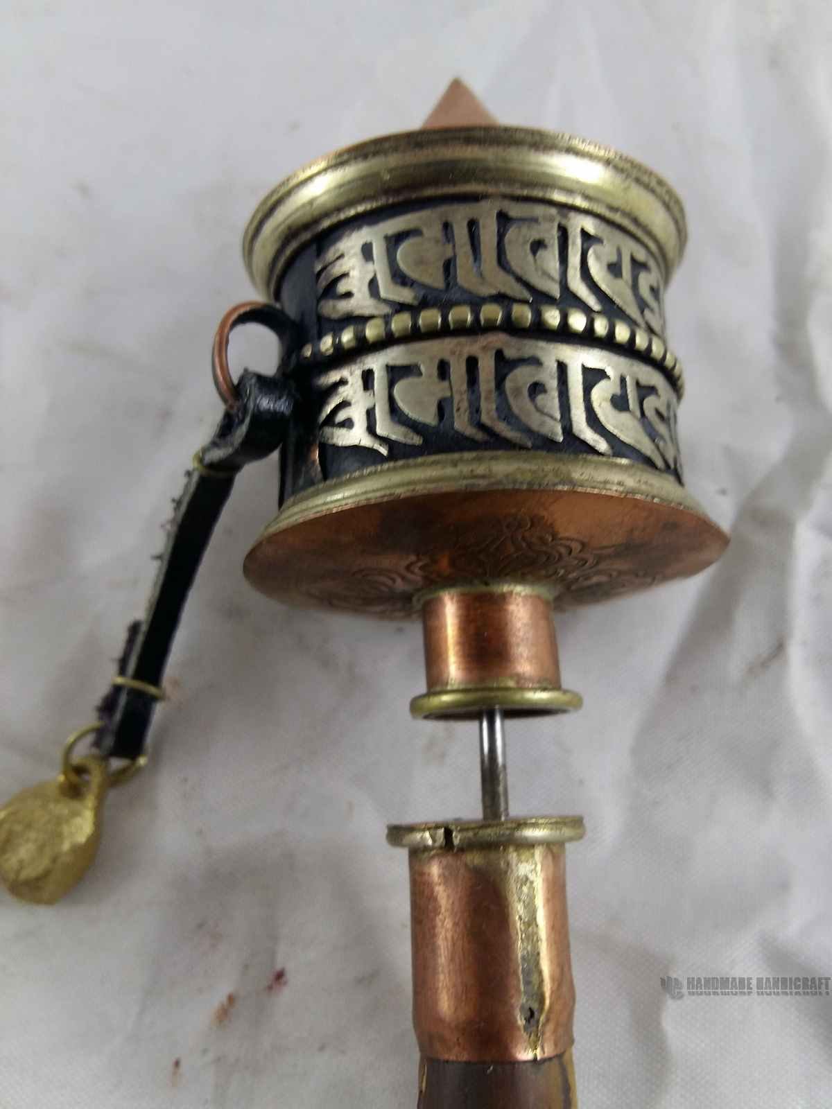 Brass Hand Held Prayer Wheel , A wheel containing mantras, used to accumulate merit and spread blessings