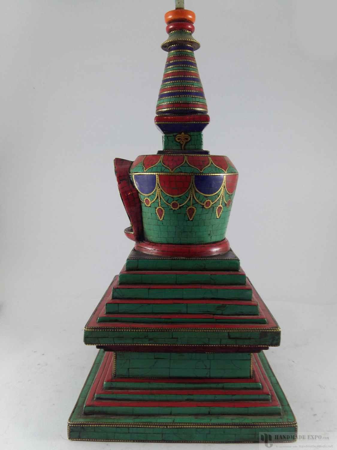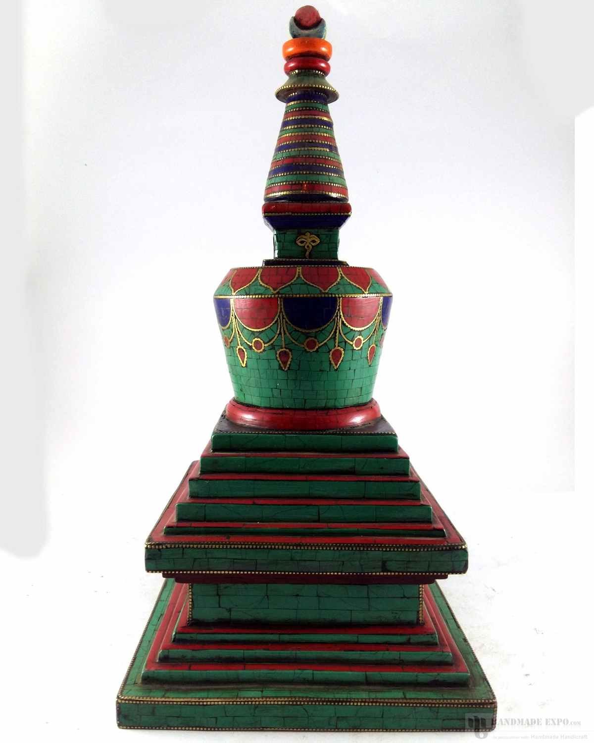 Wooden Stupa with Stone Setting, Haldu Wood , Sacred monument, representing the enlightened mind of the Buddha