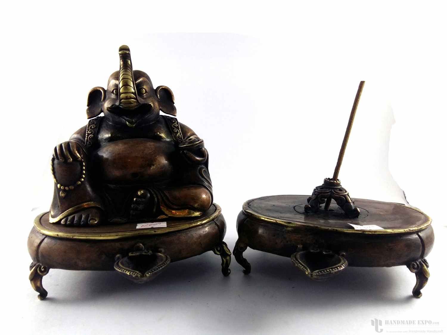 Brass Ganesh Incense Burner with Oil Lap , Used to purify the surroundings, symbolizing devotion and the sacred nature of offerings