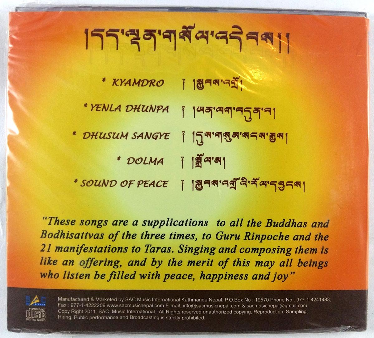 The audio CDs may include a variety of mantras and chants, such as the Om mantra, the Tara mantra, the Medicine Buddha mantra, and many others. Each mantra or chant may be accompanied by traditional music, such as the sound of Tibetan singing bowls, bells, or other instruments, which can enhance the meditative experience. Read More