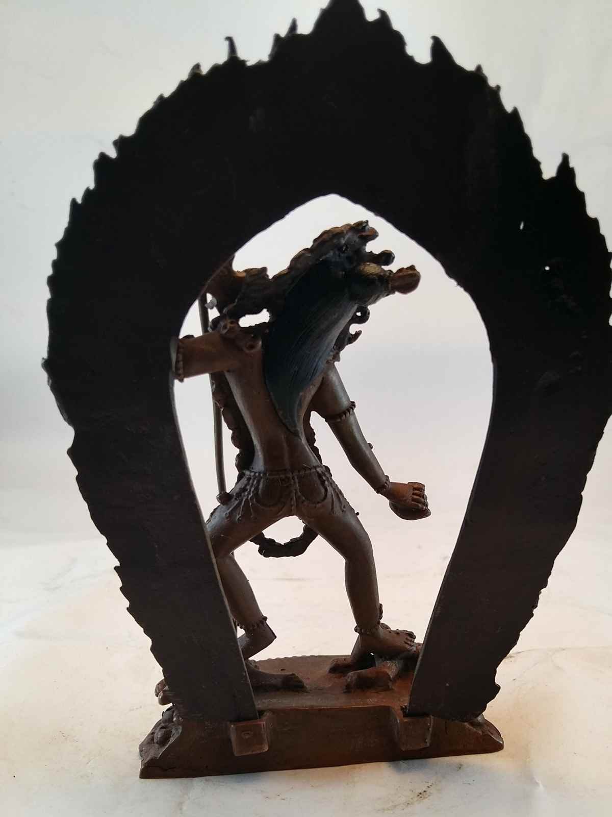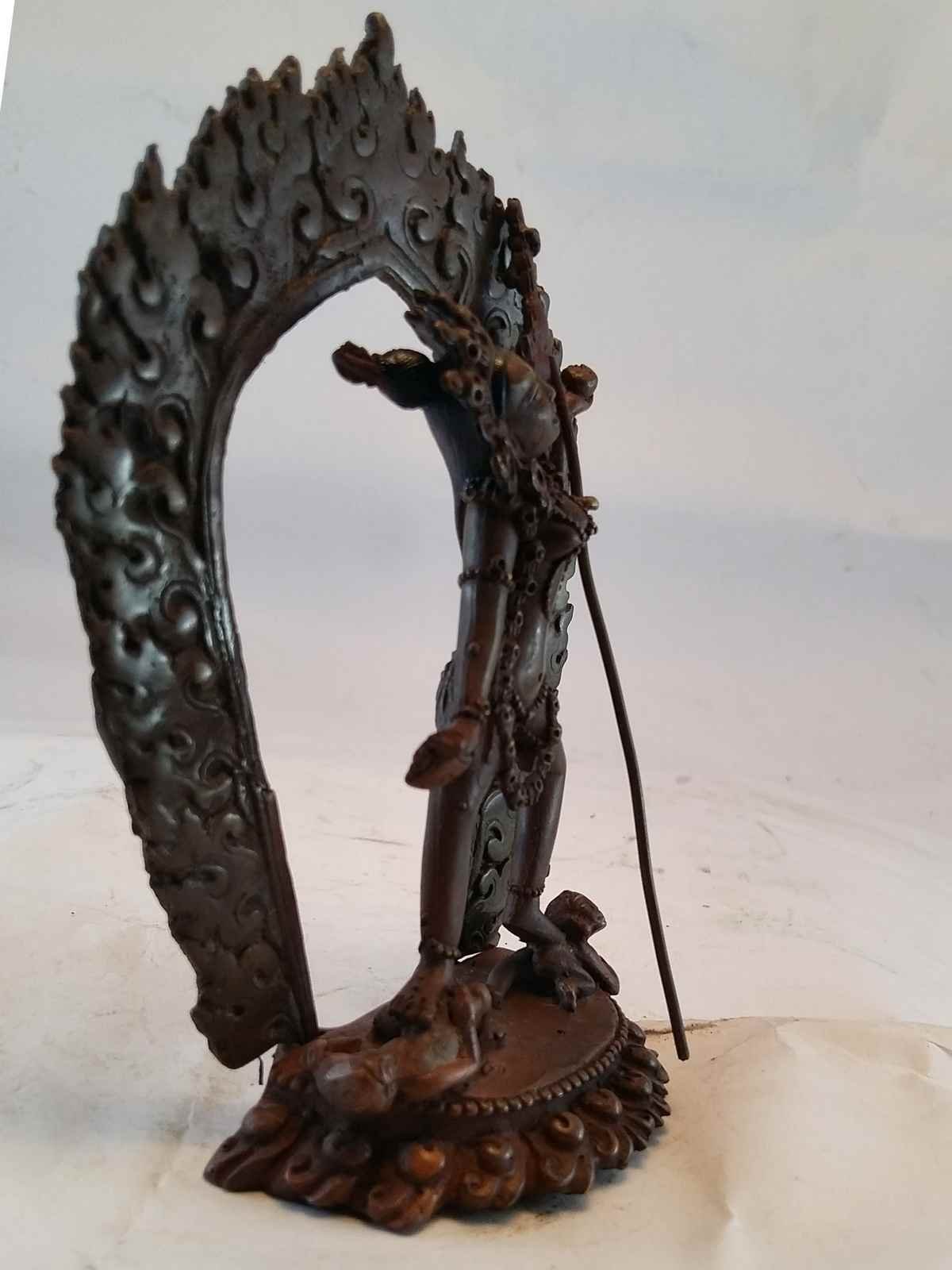 By imitating the natural aging process, the chocolate color antique patina lends an air of authenticity and vintage charm to the Vajrayogini. This carefully crafted finish ensures that the patina remains intact for an extended period, offering longevity and resistance to wear. The result is a unique piece that captures the essence of a time-worn copper statue, evoking a sense of history and artistic heritage.