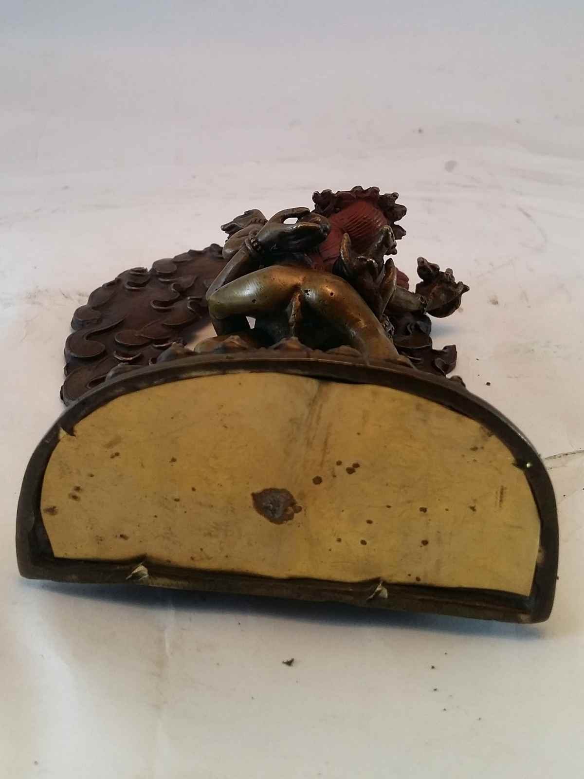 By imitating the natural aging process, the chocolate color antique patina lends an air of authenticity and vintage charm to the Black Jambhala. This carefully crafted finish ensures that the patina remains intact for an extended period, offering longevity and resistance to wear. The result is a unique piece that captures the essence of a time-worn copper statue, evoking a sense of history and artistic heritage.