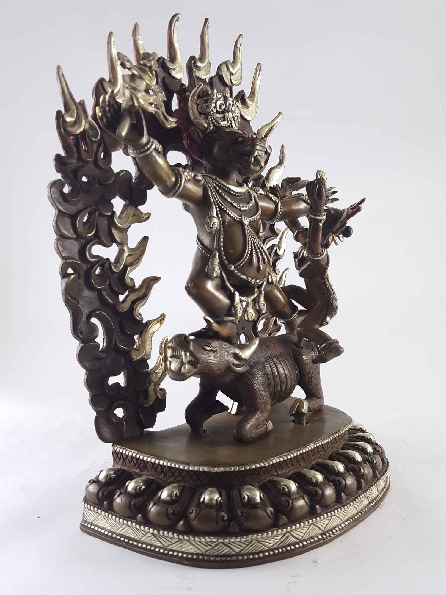 Yamantaka - Heruka Statue - Copper Silver Plated Oxidized , wrathful destroyer of ignorance