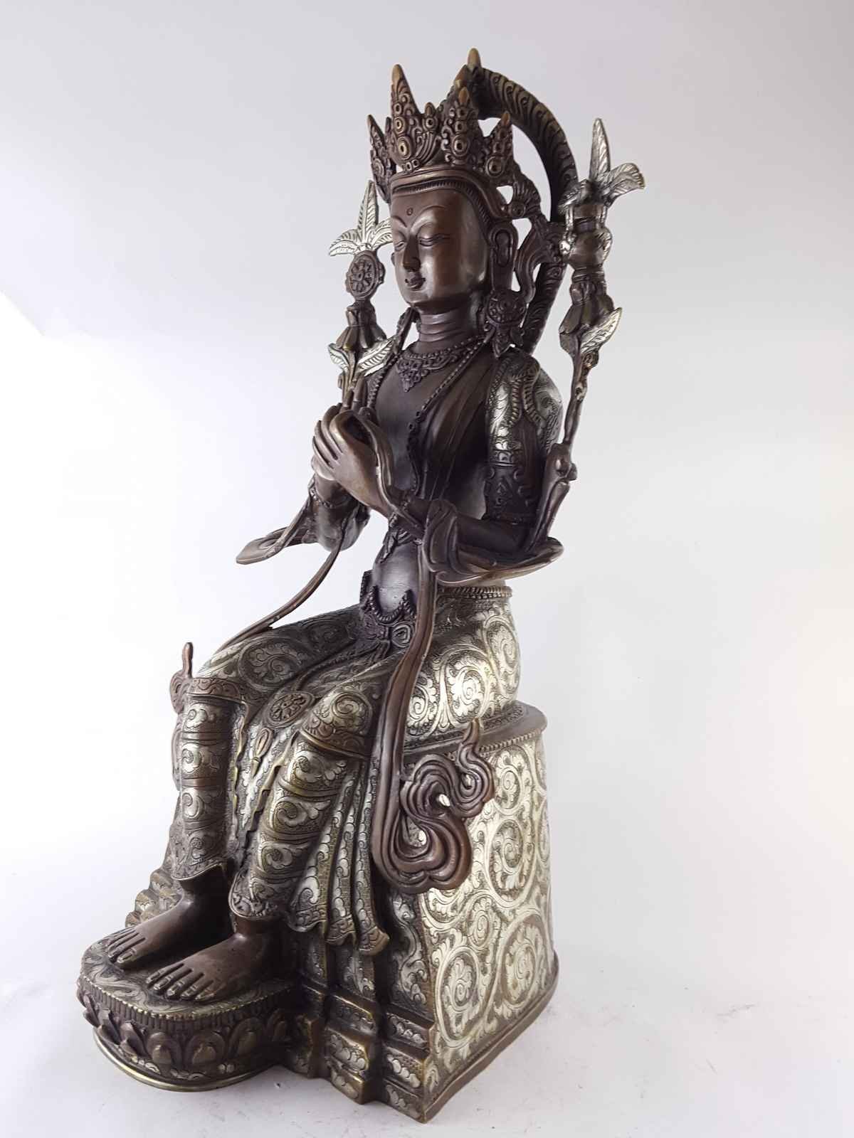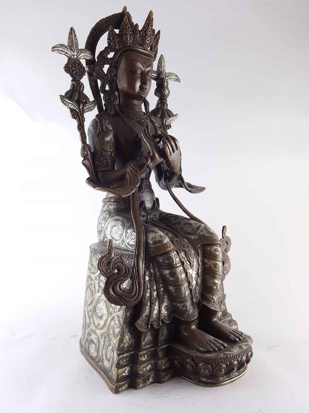 Maitreya Buddha Statue - Copper, Silver Plated, Chocolate Oxidized , The future Buddha, bringing love and compassion to the world