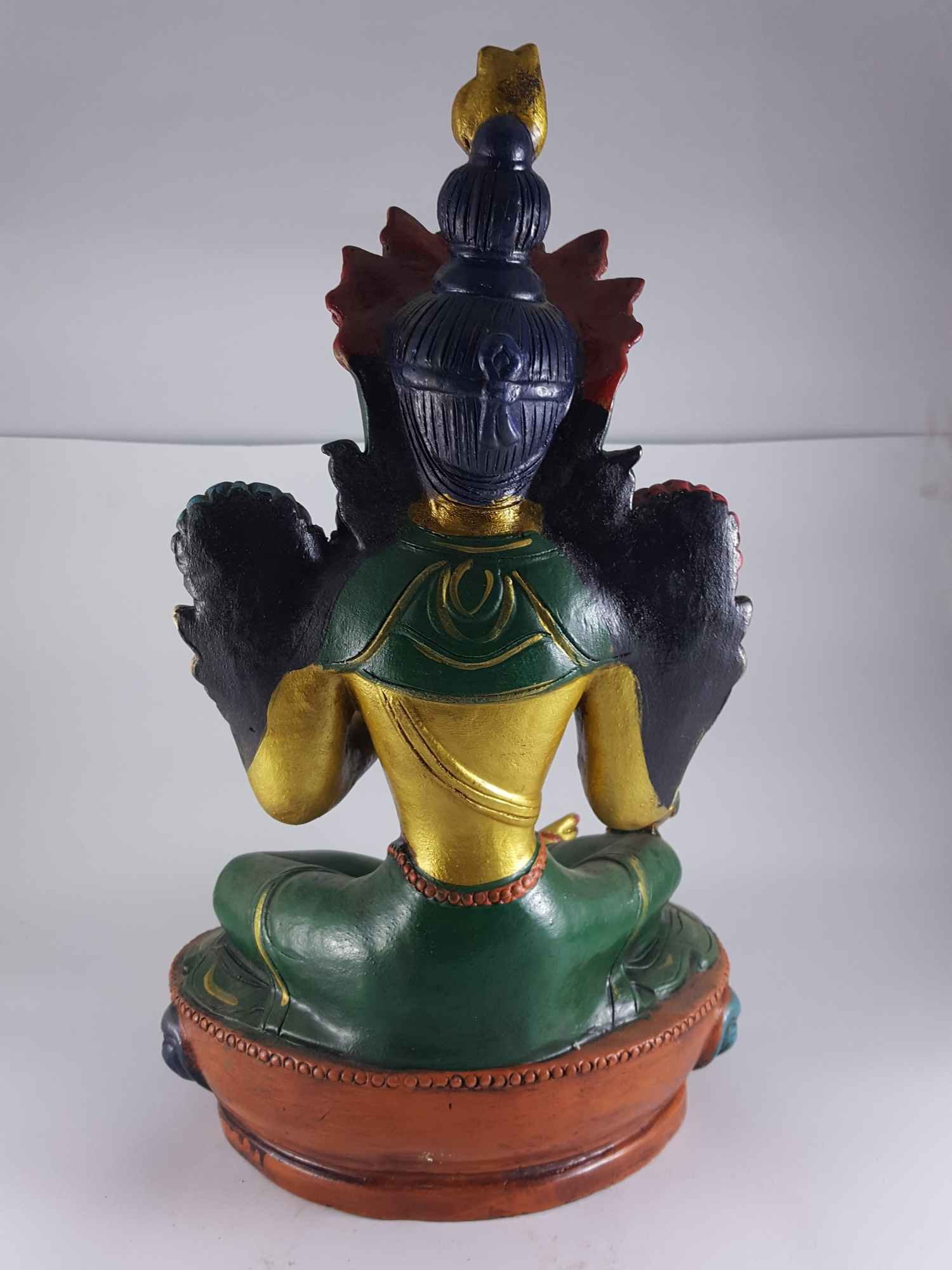 The Green Tara is adorned with traditional colors, creating a captivating aesthetic through a combination of gold and various hues. This painting technique follows a time-honored process that aims to faithfully represent the Green Tara in accordance with traditional color descriptions. In the context of Buddhist statues, this approach holds great significance. Each statue has its own primary color, and it is crucial to depict the statue in its authentic shade. Read More