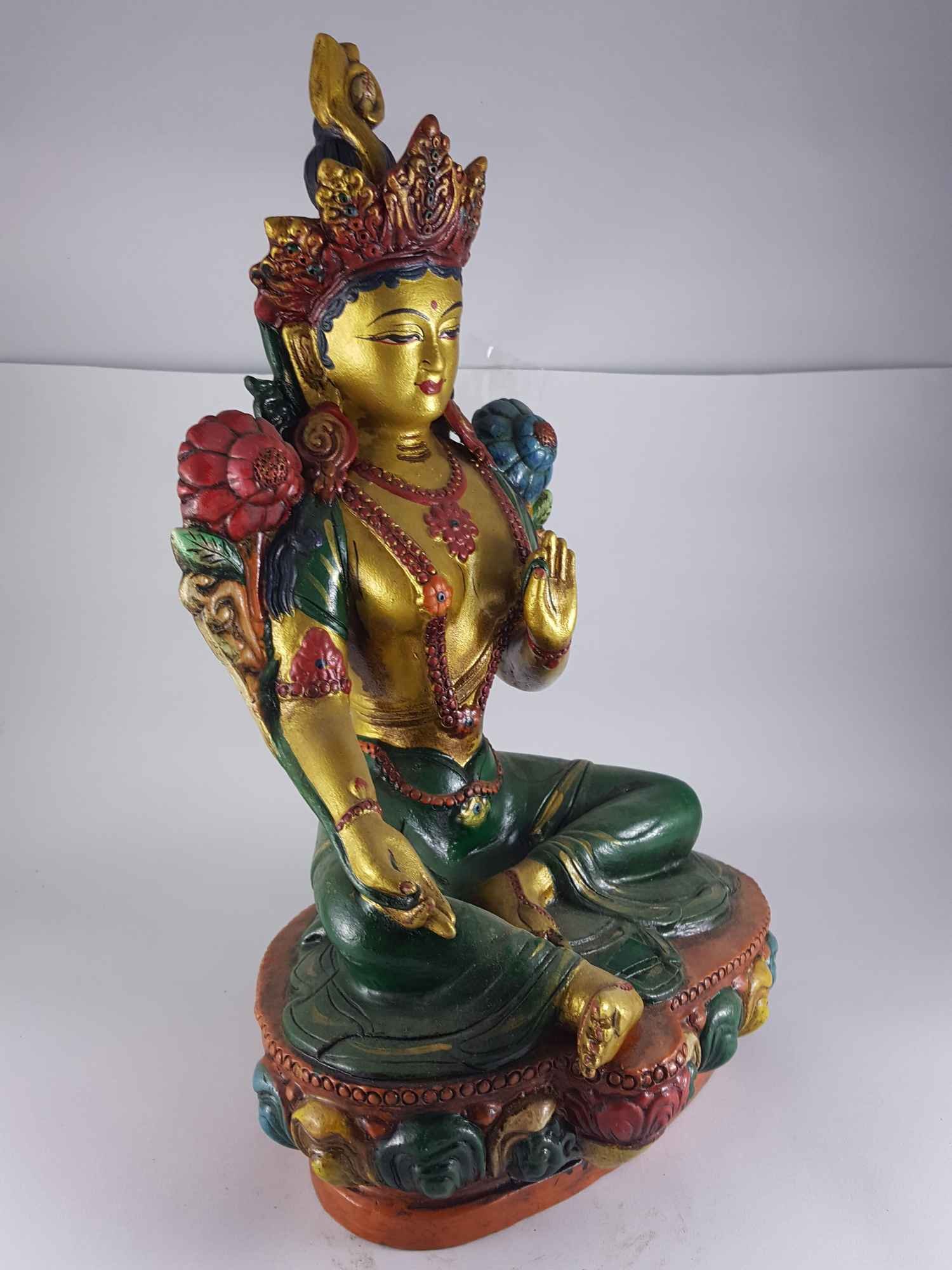 Clay Statue of Green Tara Made In Nepal, handmade, Painted , Goddess of Compassion, Protection, and Swift Action