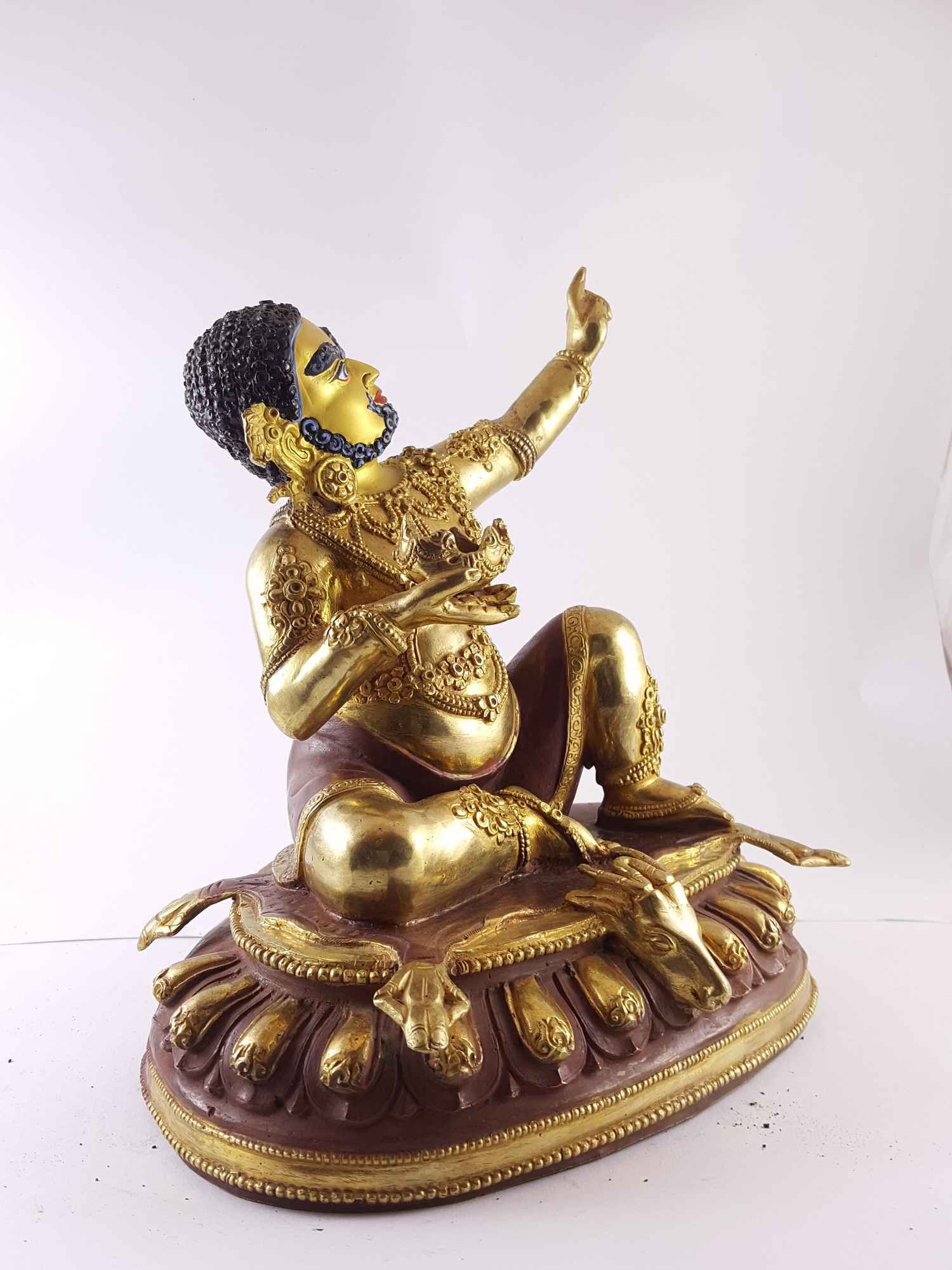 Statue of Mahasiddha Virupa, Partly Gold Plated, Painted Face , defying worldly laws with miraculous powers