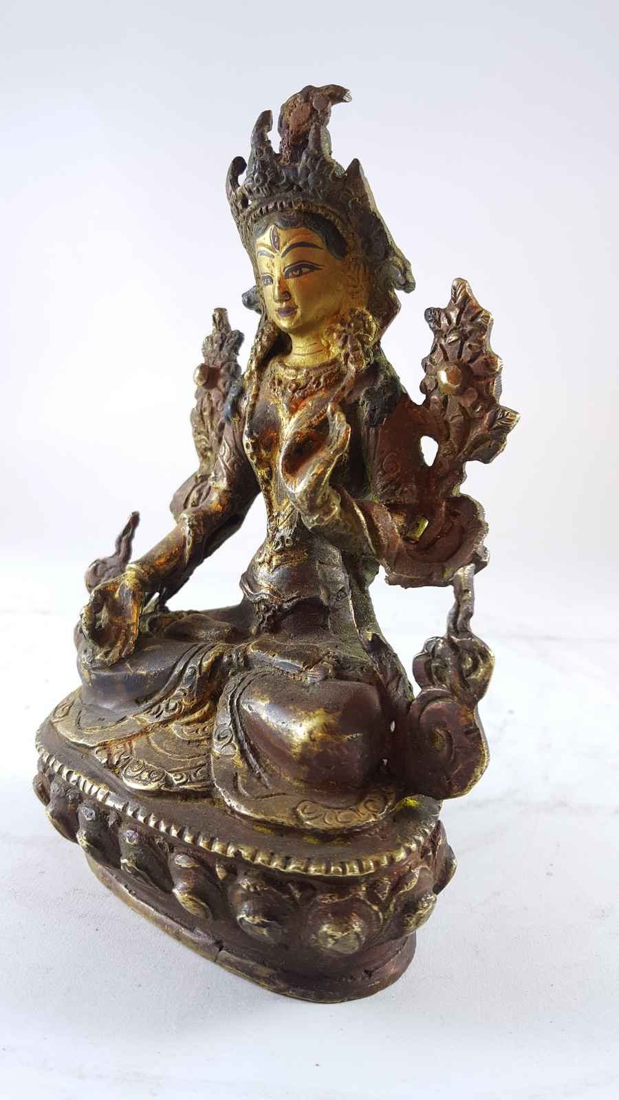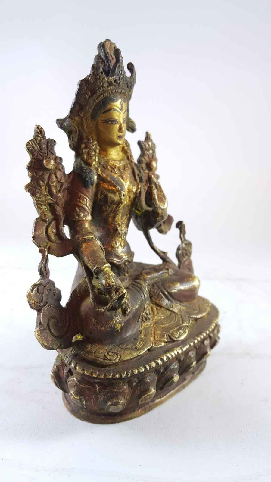Handmade Statue of White Tara Partly Gold Plated, Painted Face, Antique Finishing , Goddess of longevity, healing, and serene compassion