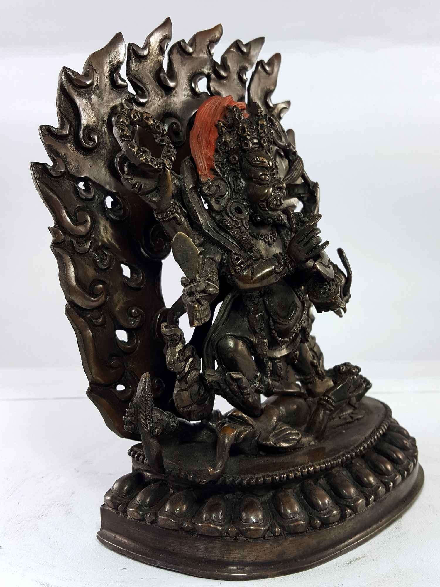 Black Mahakala / Six Arms Mahakala Statue of Copper Oxidized , Fierce protector, destroys obstacles, guards the Dharma