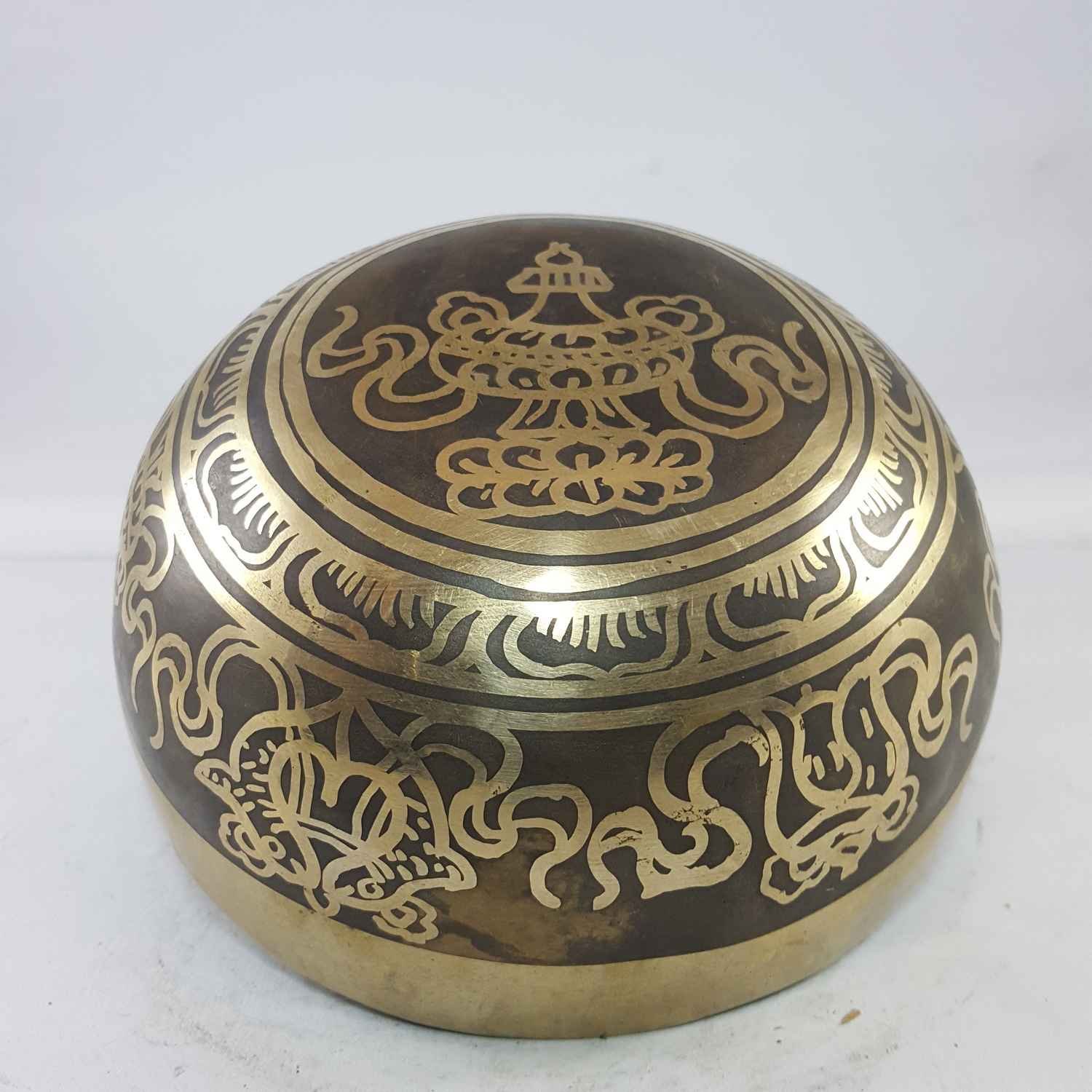 The finished bowl is then polished to a high shine and may be adorned with intricate designs and symbols that are significant in Buddhist or Hindu tradition. Read More