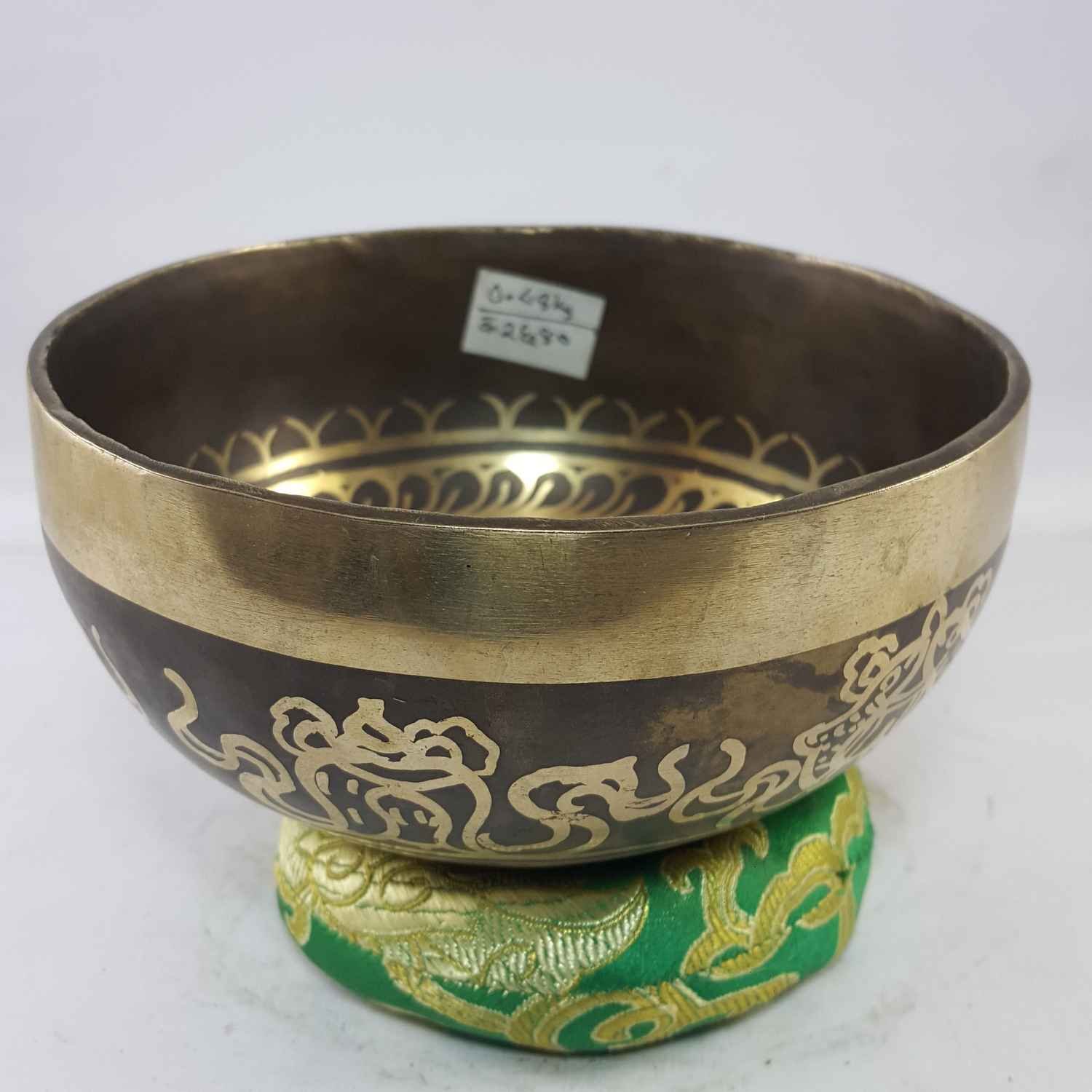 Bronze Hand Beaten Etched and Carved Bowls with Fish At The Centre, Select Accessories , A bowl used for meditation and healing, producing a soothing sound that promotes relaxation and mindfulness