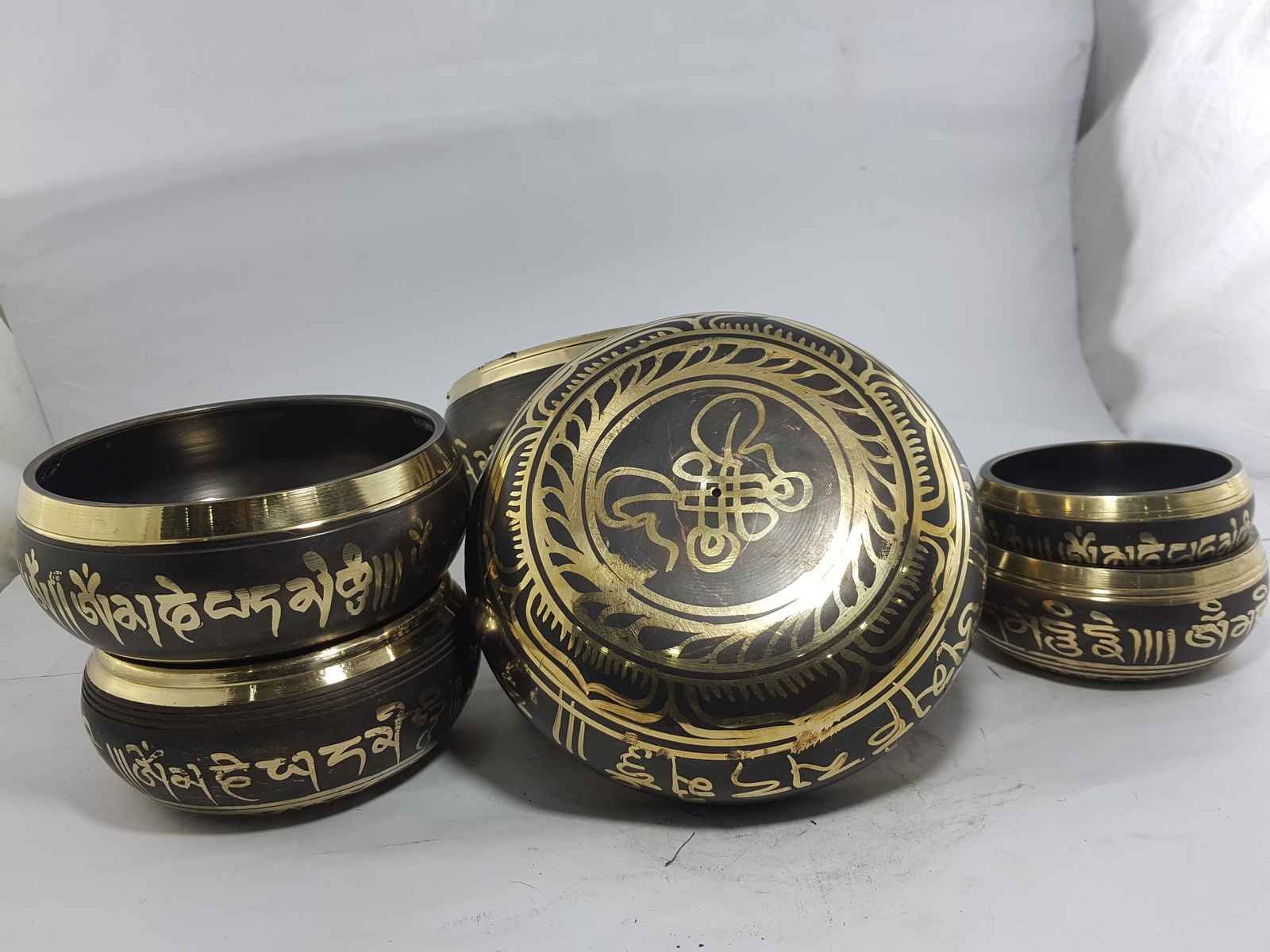 Singing Bowls 6pcs Set, Casting, Brass, etched Designs, Select Accessories |