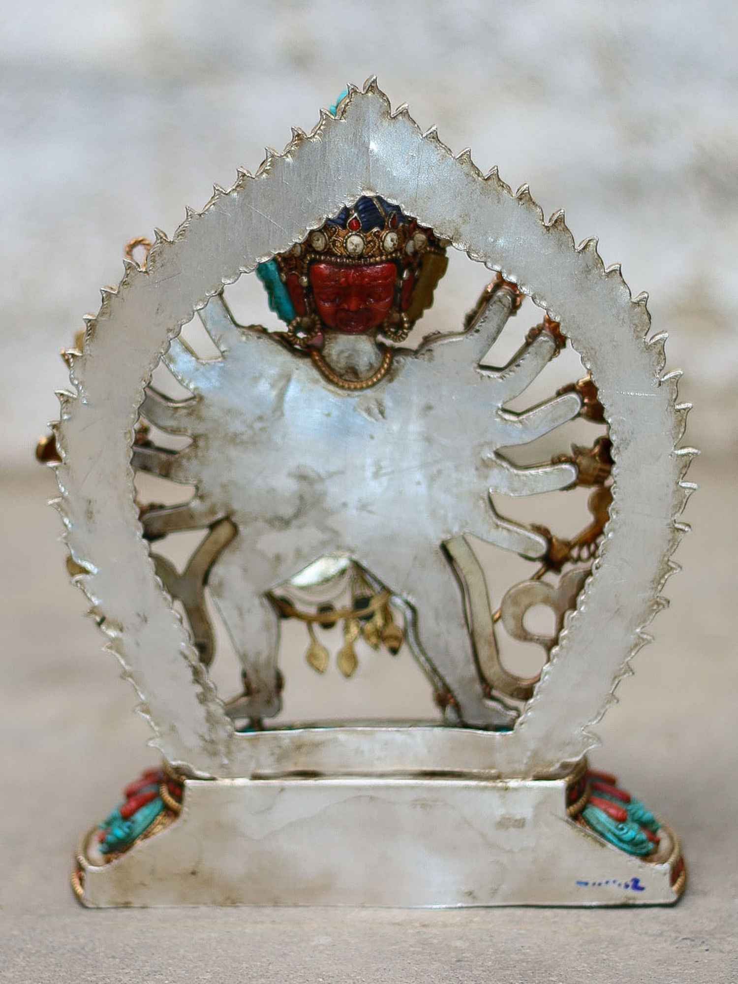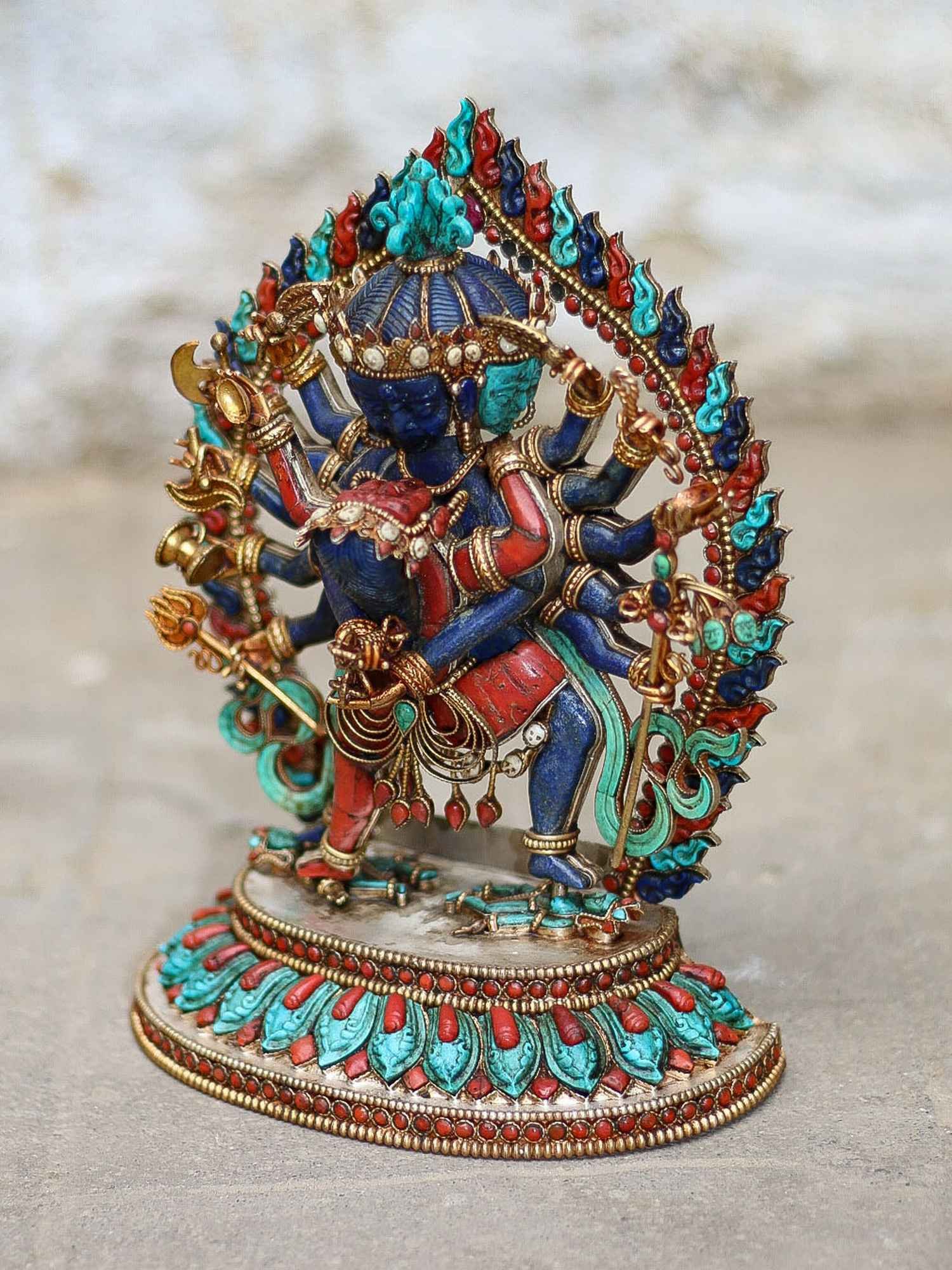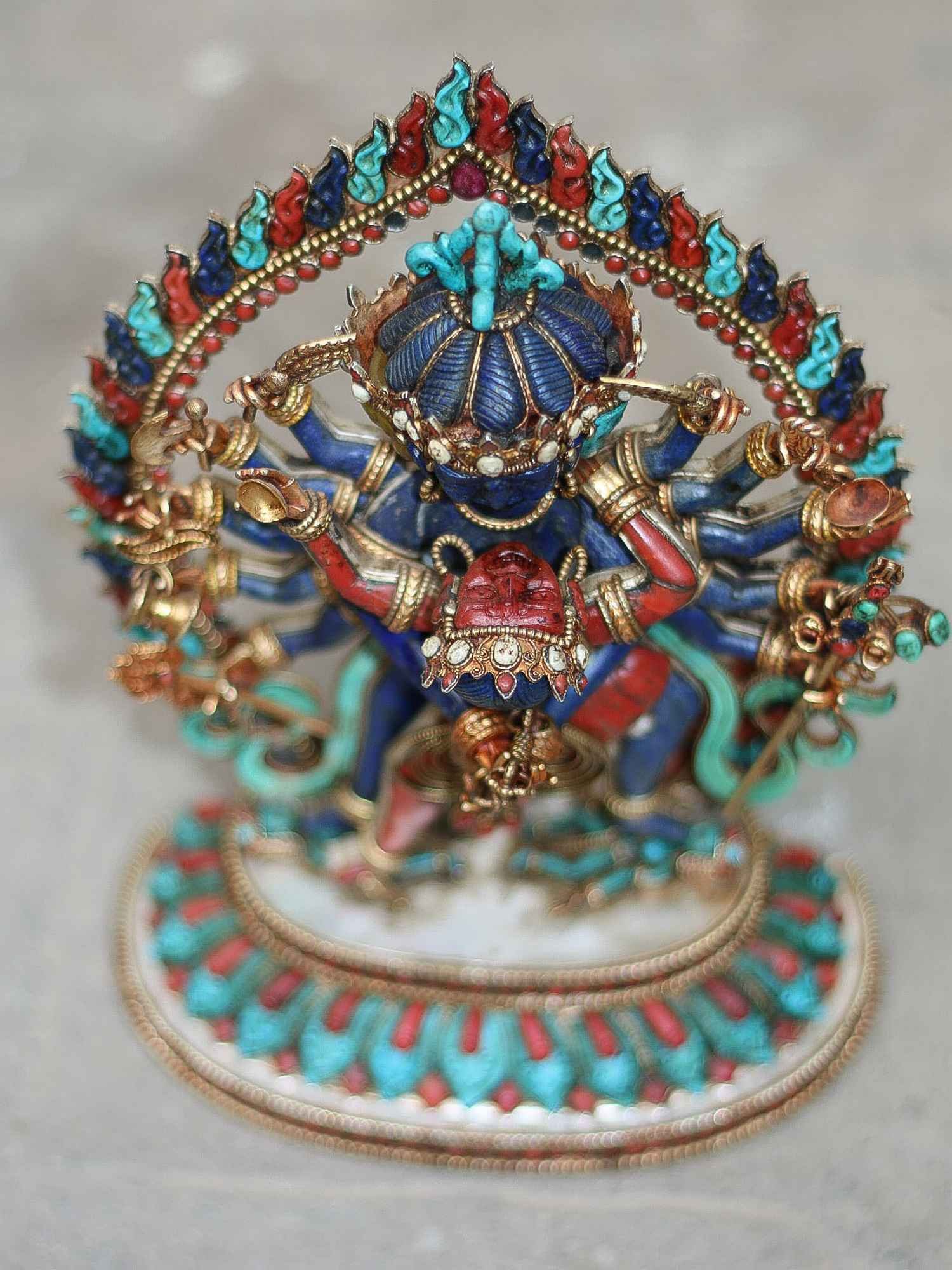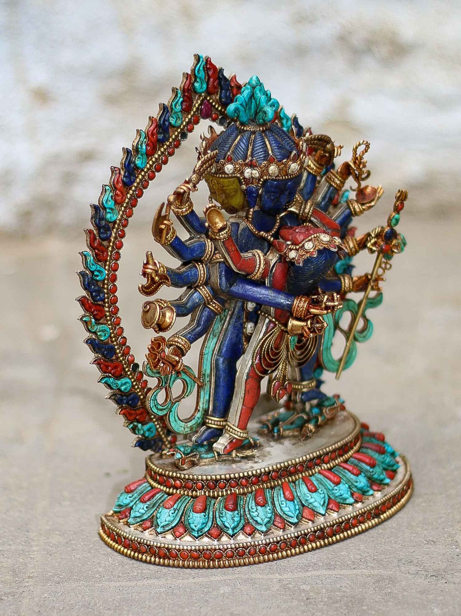Master Quality, Statue of Chakrasamvara - Heruka Sterling Silver Real Amber, Real Lapis Lazuli, Real Coral, Real Turquoise, Gold Plated Over Silver , Lord of the Circle, Tantric Deity of Enlightenment and Union of Wisdom and Compassion