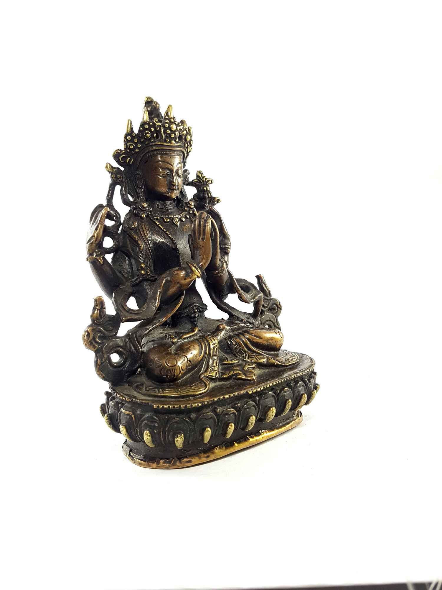 Exquisite and Rare Nepali Brass Chenrezig Statue Antique Finishing - Perfect For Gifting and Home Décor At An Affordable Price , Bodhisattva of Compassion, Protector of All Beings