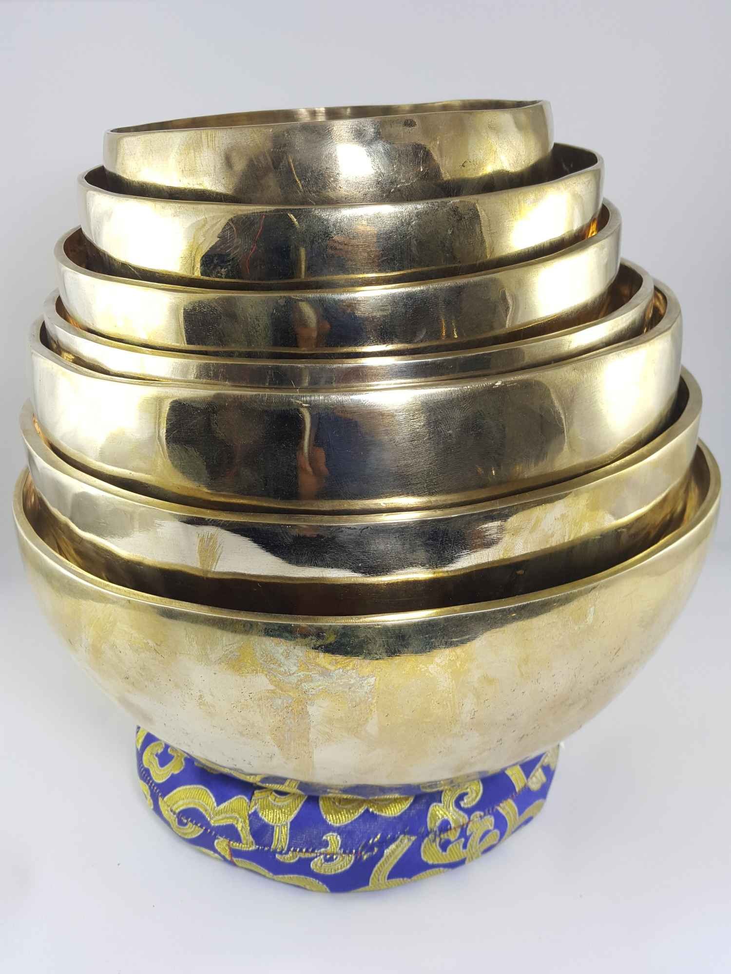 15 To 28 Cm, Singing Bowl Seven Chakra Set, Awaken Your Spiritual Center: Embrace Balance with Our 7 Chakra Bronze Singing Bowl, Select Accessories |