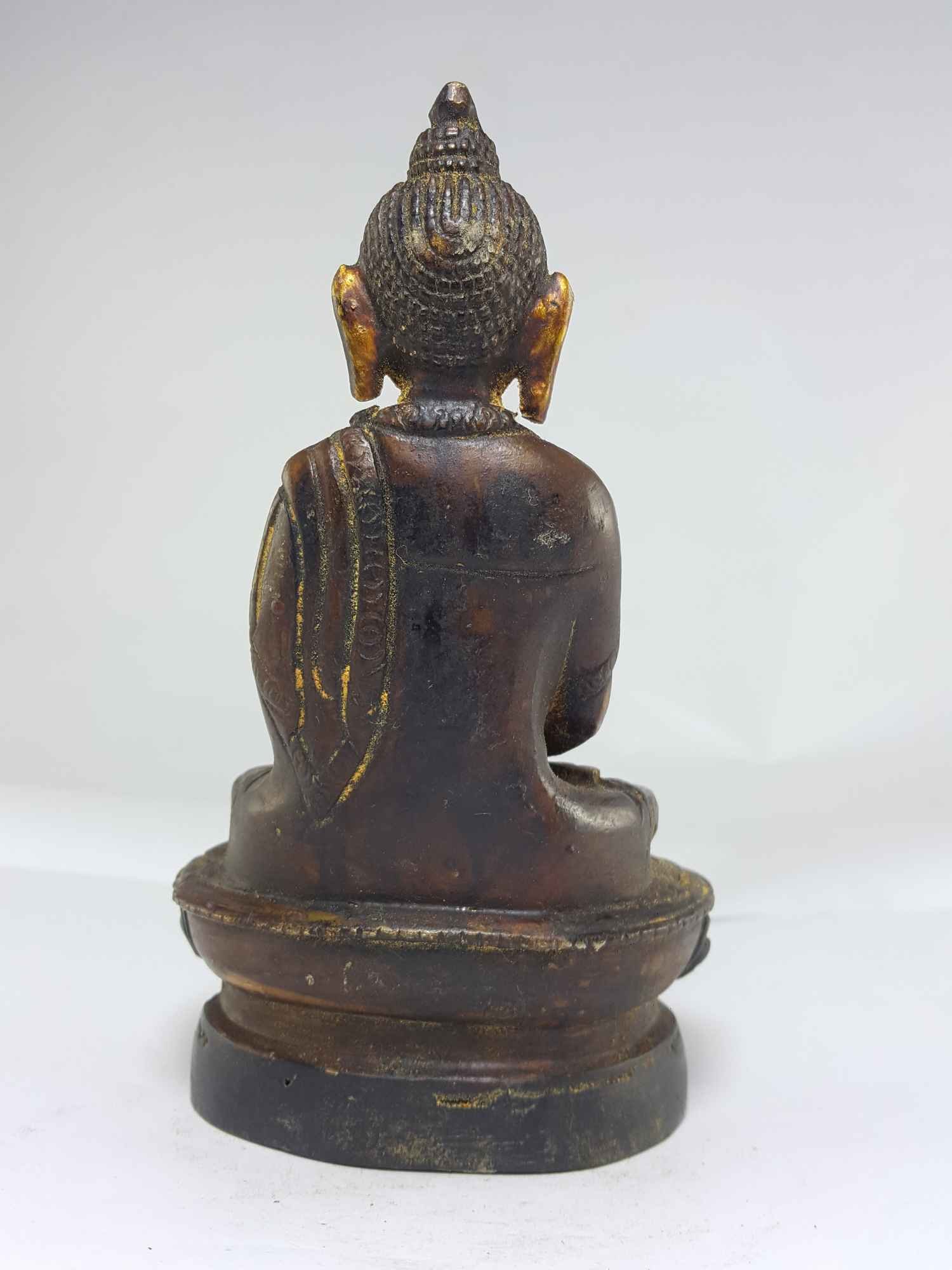 Copper Amitabha Buddha with Wooden Base and Antique Finishing , Buddha of Infinite Light: Symbol of Boundless Compassion