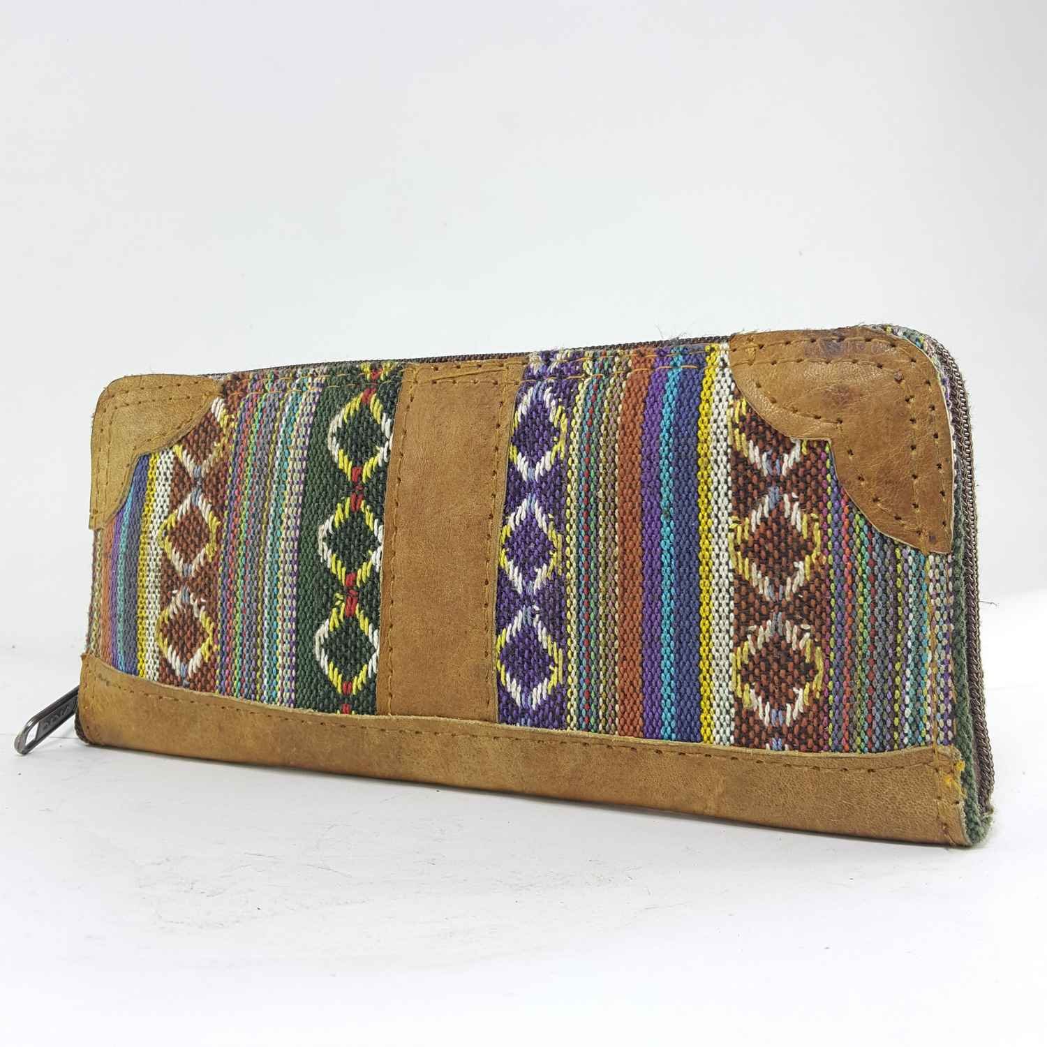 Leather and Gheri Cotton Purse 8 Pocket, 2 Zip |