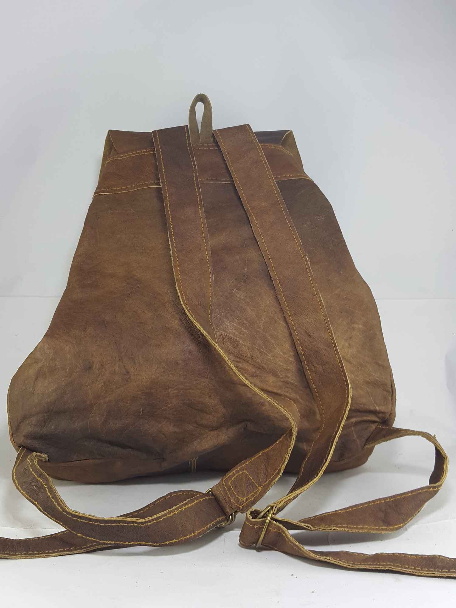 Himalayan Yak Leather Backpack Bag 3 Pocket, 2 Button Lock, Leather Lace, 1 Leather Stripe Lock |