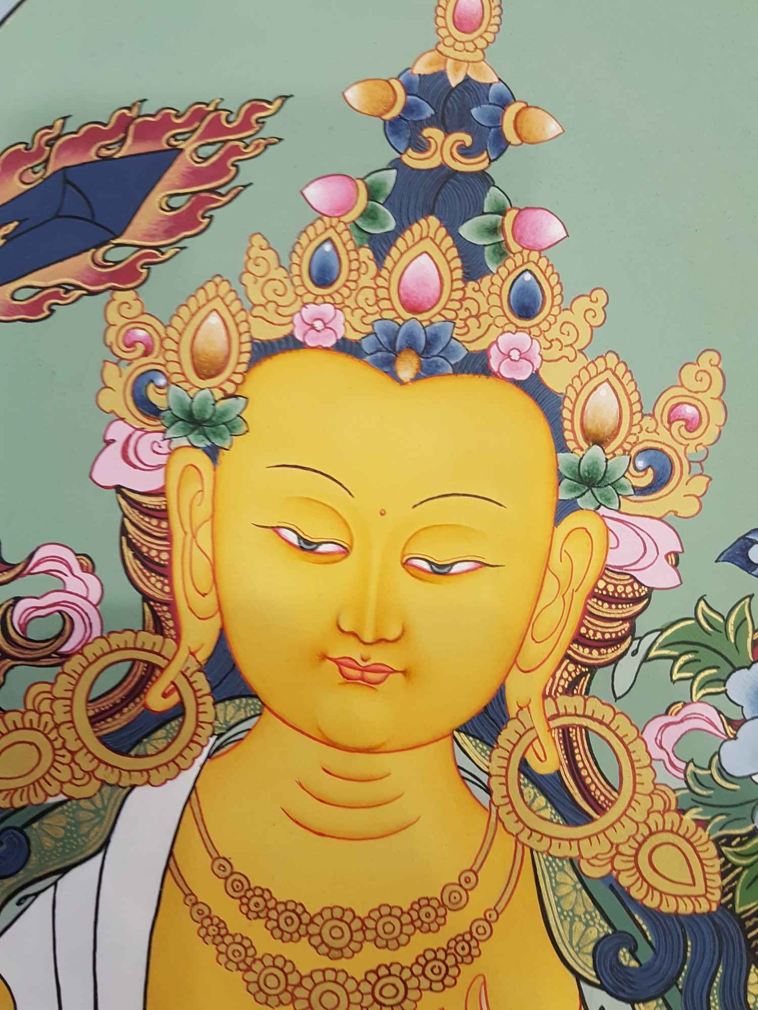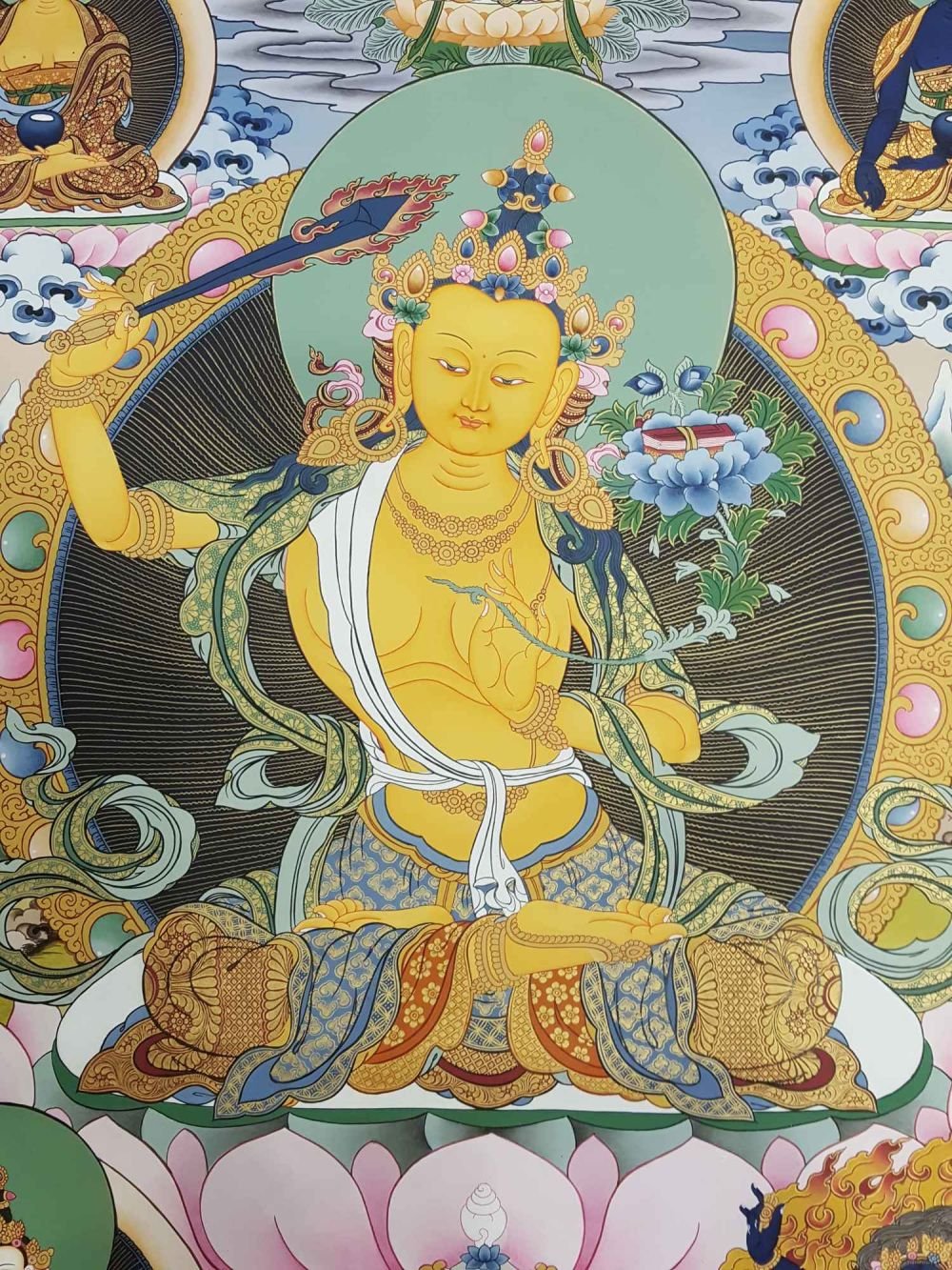 Manjushri Real Hand Painted Thanka Painting Real Gold, HQ, One Hair Brush, Lamas Painting , Wisdom Buddha, cutting through ignorance with the sword of insight