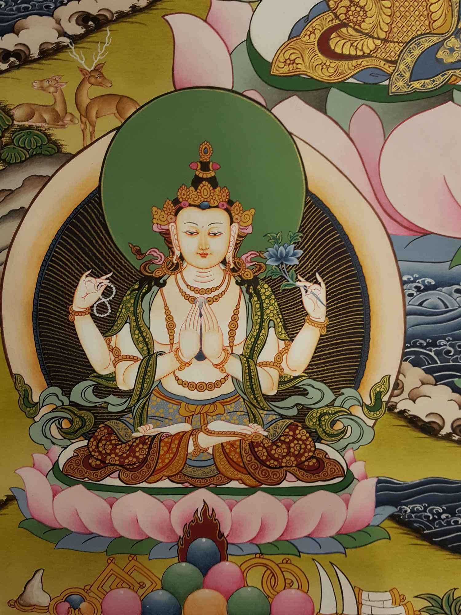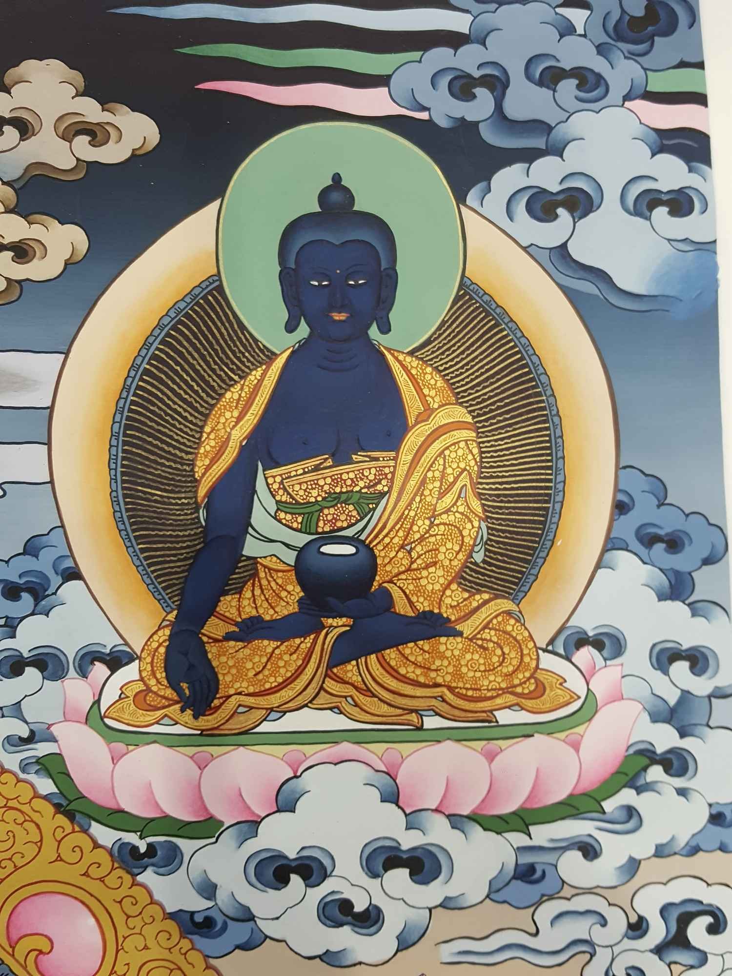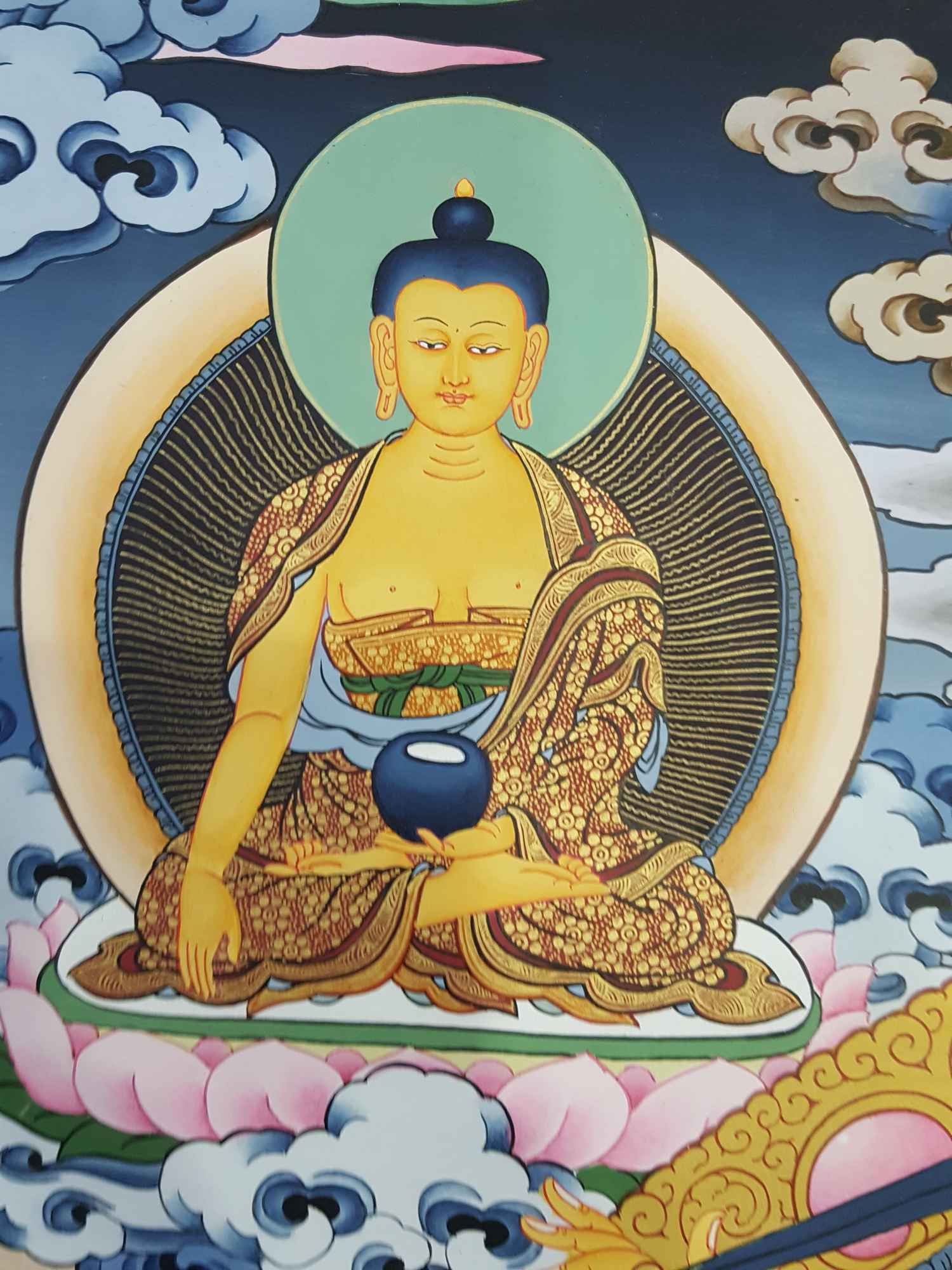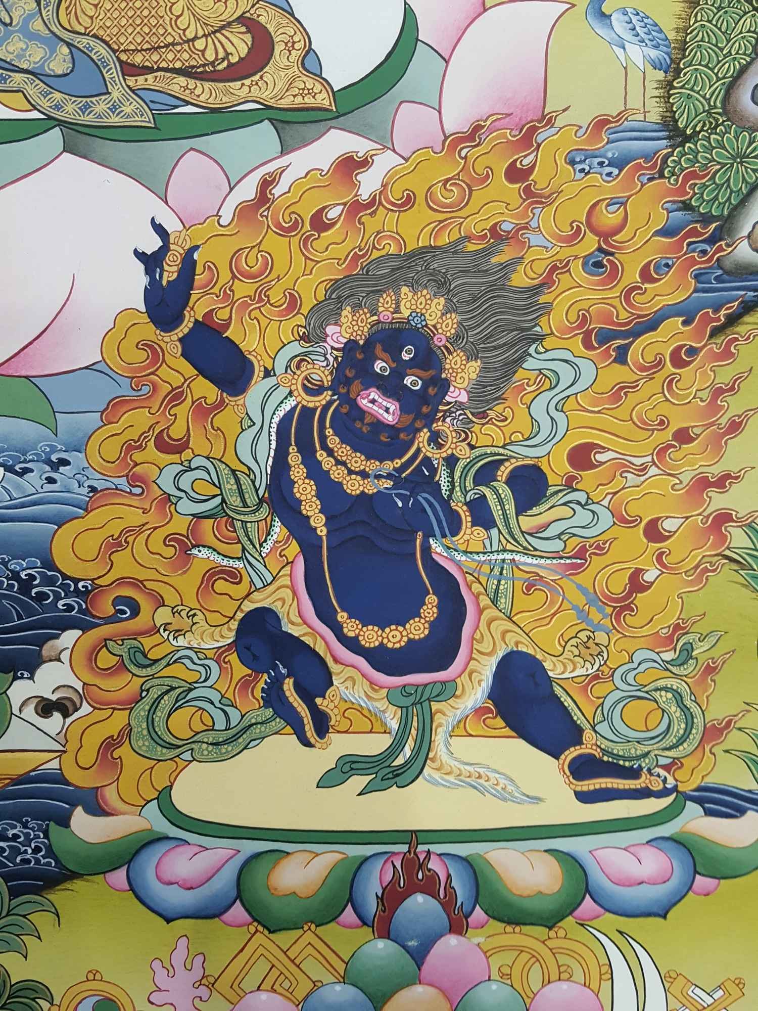 A thangka, also known as tangka, thanka, or tanka, is a vibrant and intricate Tibetan Buddhist painting that serves as a visual representation of spiritual teachings. Crafted with meticulous detail on cotton or silk appliqué, thangkas depict a wide range of subjects including Buddhist deities, sacred scenes, mandalas, and narrative stories. These sacred artworks are traditionally kept unframed and rolled up for storage, resembling ancient scrolls. To protect their delicate nature, thangkas are mounted on textile backings and often adorned with a silk cover on the front. Proper preservation in dry environments is crucial to maintain the integrity and longevity of the silk. Read More
