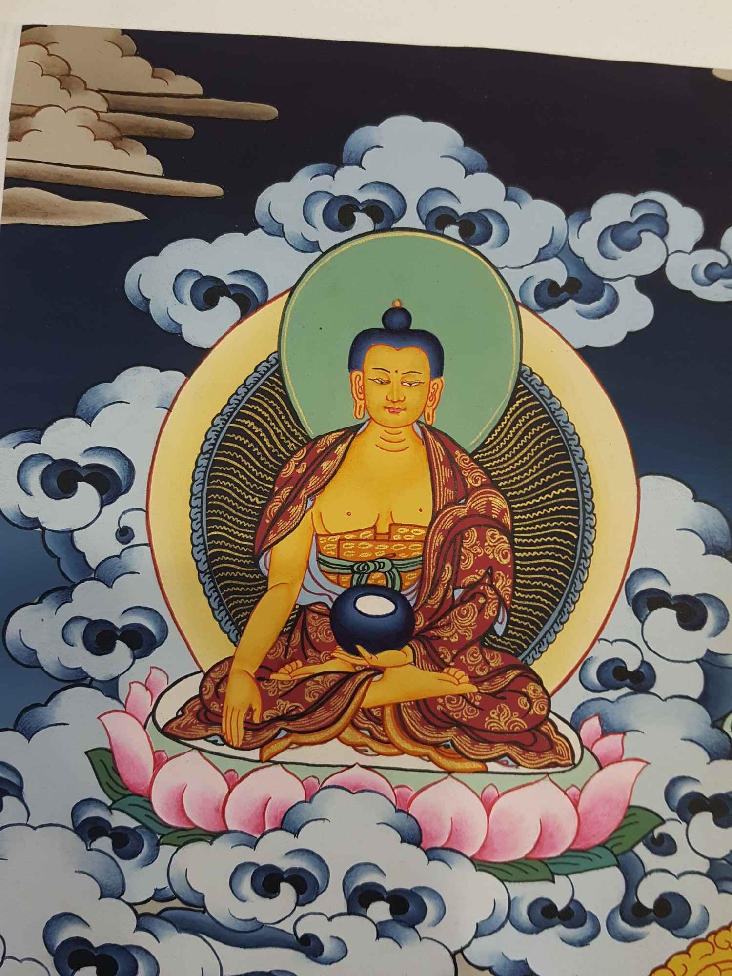 A thangka, also known as tangka, thanka, or tanka, is a vibrant and intricate Tibetan Buddhist painting that serves as a visual representation of spiritual teachings. Crafted with meticulous detail on cotton or silk appliqué, thangkas depict a wide range of subjects including Buddhist deities, sacred scenes, mandalas, and narrative stories. These sacred artworks are traditionally kept unframed and rolled up for storage, resembling ancient scrolls. To protect their delicate nature, thangkas are mounted on textile backings and often adorned with a silk cover on the front. Proper preservation in dry environments is crucial to maintain the integrity and longevity of the silk. Read More