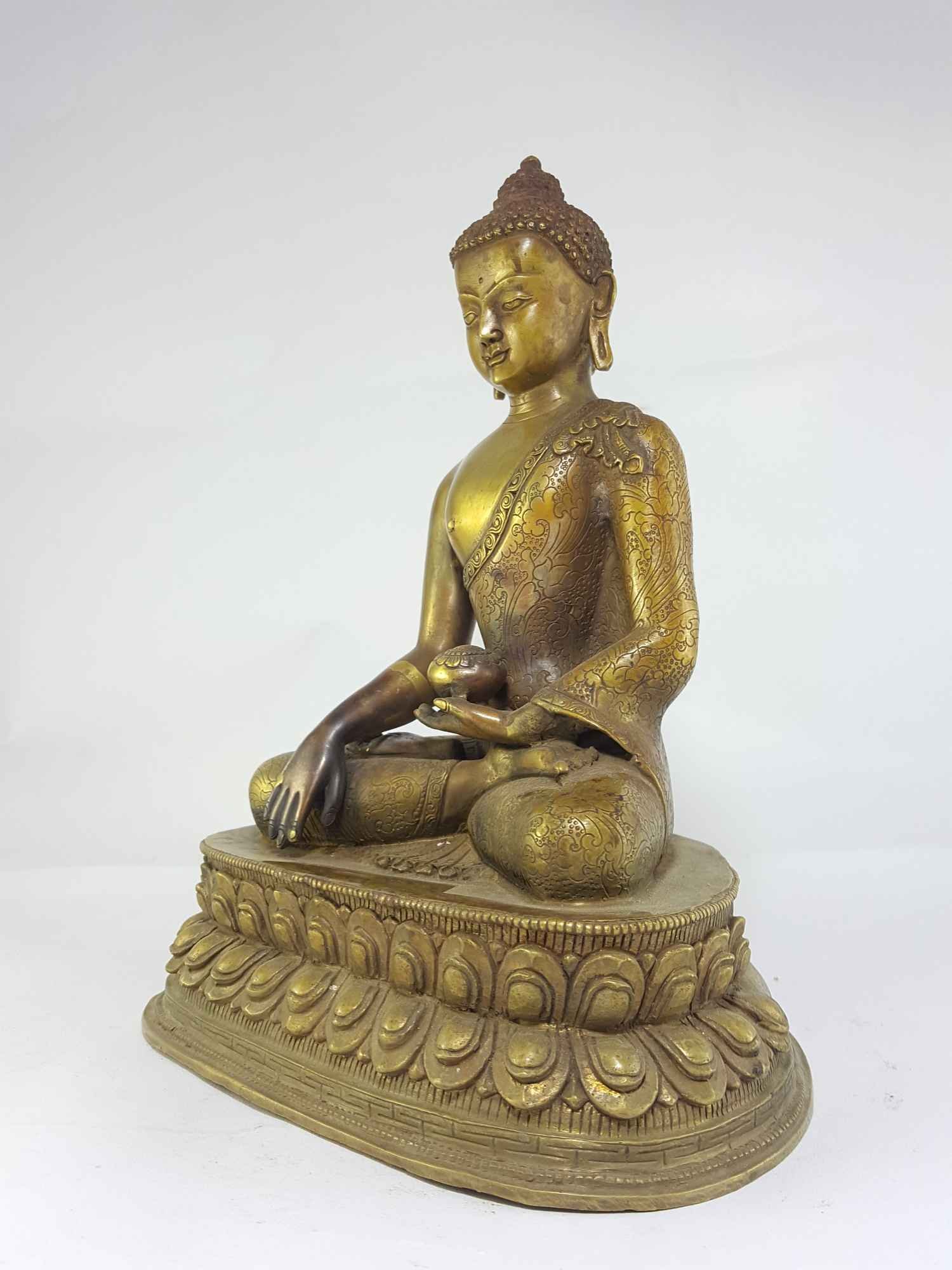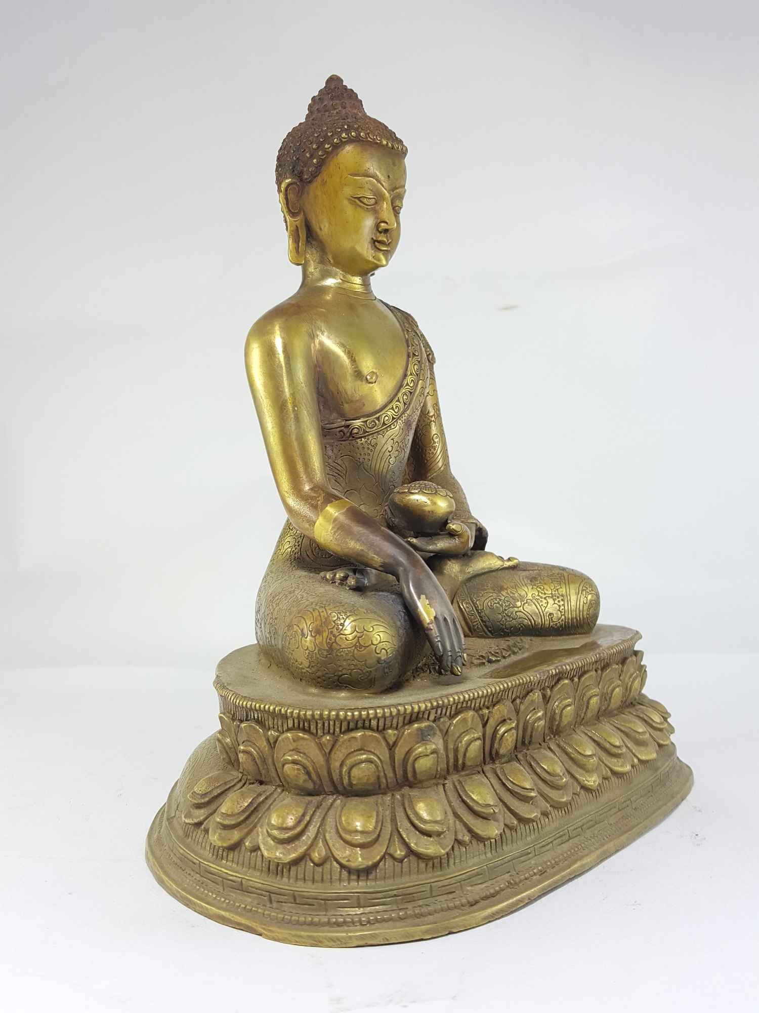 This is the Nepali handmade statue of Shakyamuni Buddha, Made by the process of los wax system with the skillful hands of Nepali crafts man from Patan a famous city inside Kathmandu valley popular for metal crafts.