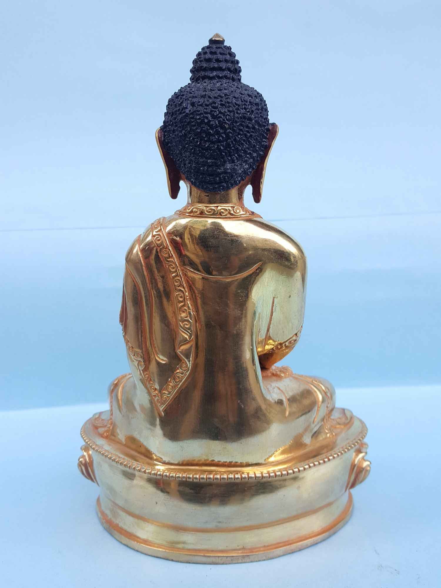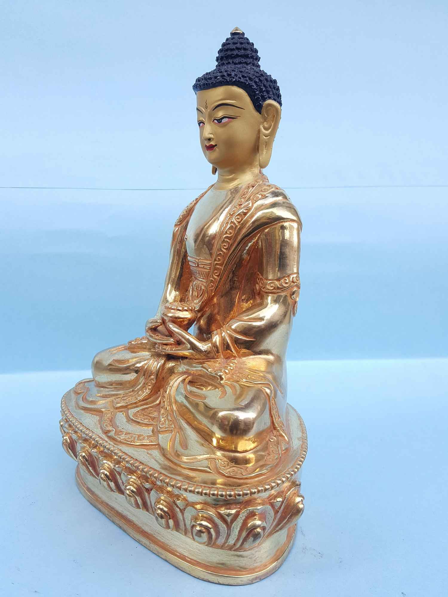 Amitabha Buddha - Tibetan Handmade Statue Full Fire Gold Plated, Painted Face , Buddha of Infinite Light: Symbol of Boundless Compassion